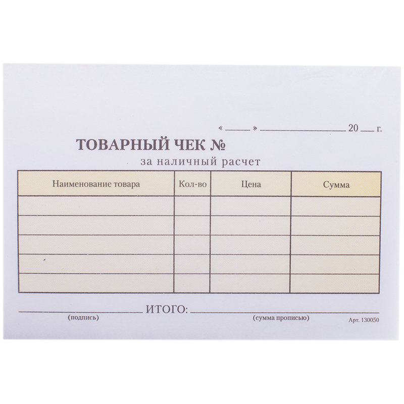Бланк формата А6, самокопирующийся, двуслойный. 50 экземпляров.