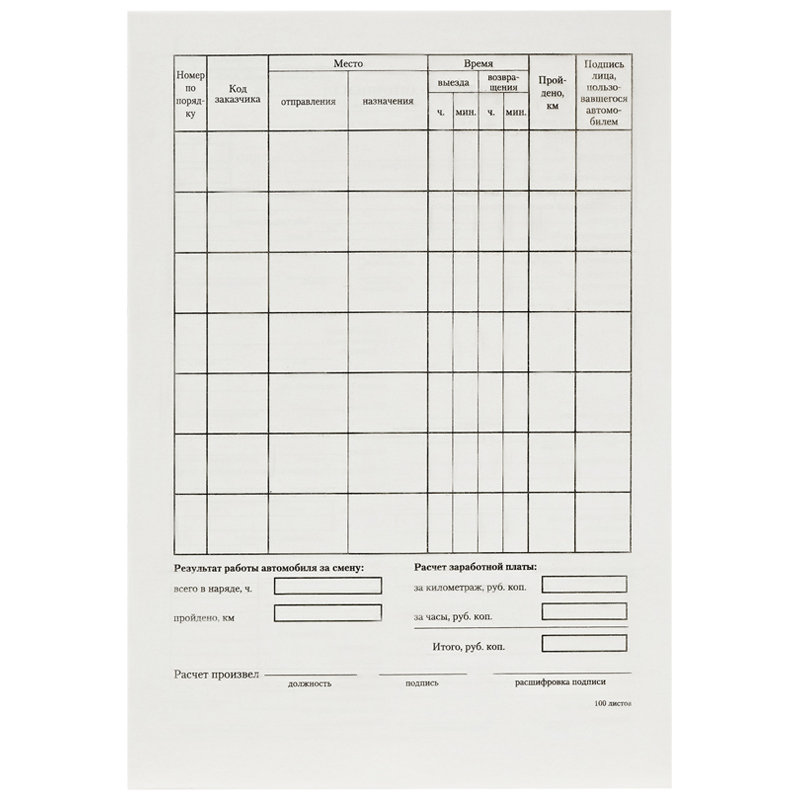 Бланк "Путевой лист легкового автомобиля". Двусторонний. Бланки изготовлены из газетной бумаги и склеены в книгу по 100 листов.