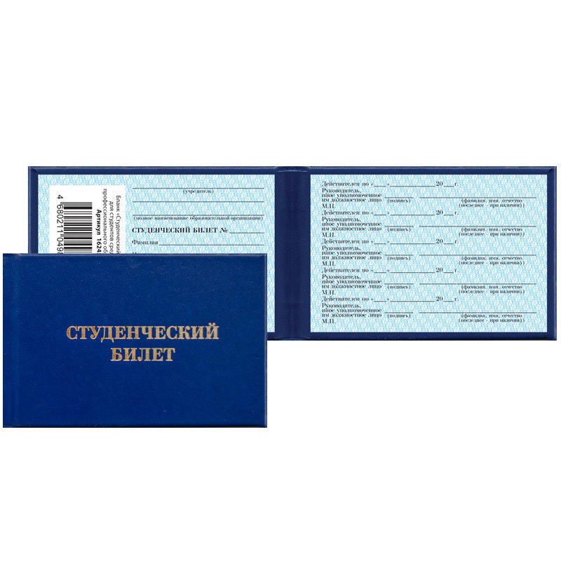 Образец бланка студенческого билета для студентов, осваивающих образовательные программы среднего профессионального образования (утв. приказом Министерства образования и науки РФ от 5 апреля 2013 г. N 240). Размер бланка 100х70 мм.