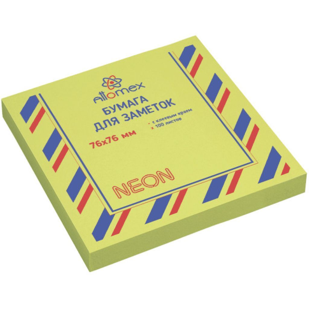 Клейкая бумага для заметок "Attomex" 76x76 мм, 100 листов, офсет 75 г/м², неоновая зеленая