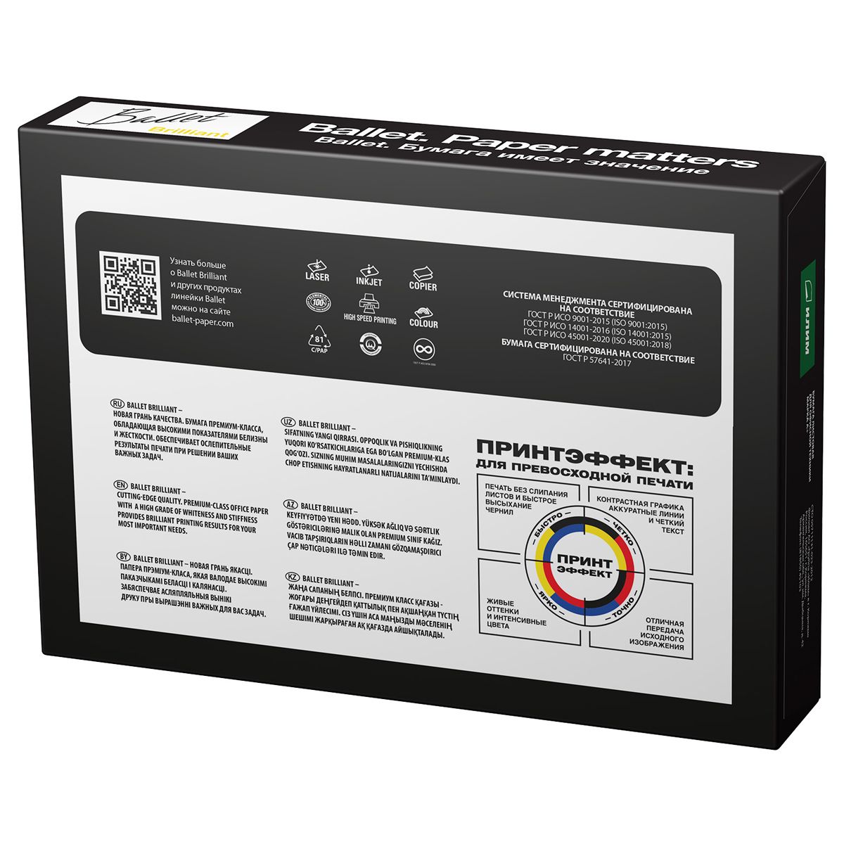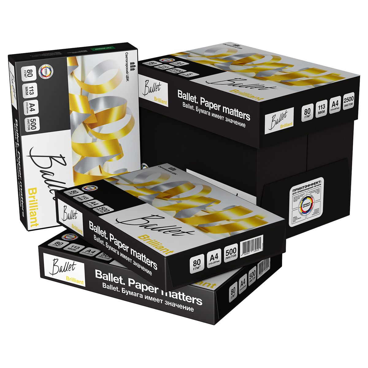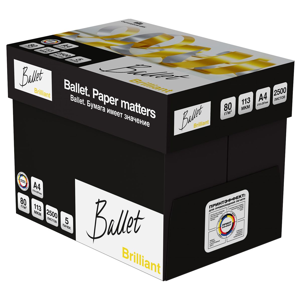 Ballet Brilliant - бумага A4 представительского класса. Обладает высокими показателями белизны и жесткости.