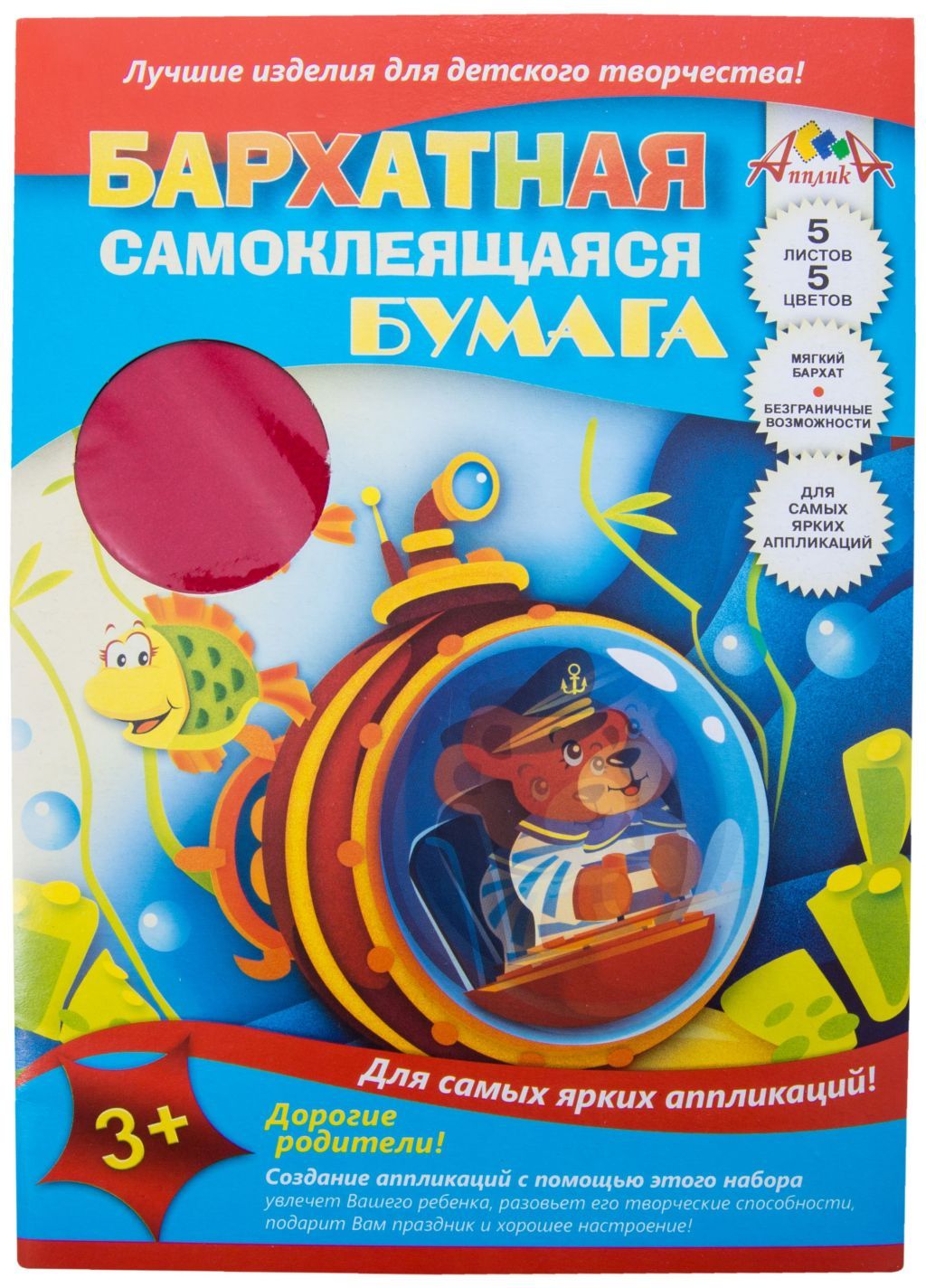 Цветная самоклеящаяся бархатная бумага. Обложка мелованный картон.