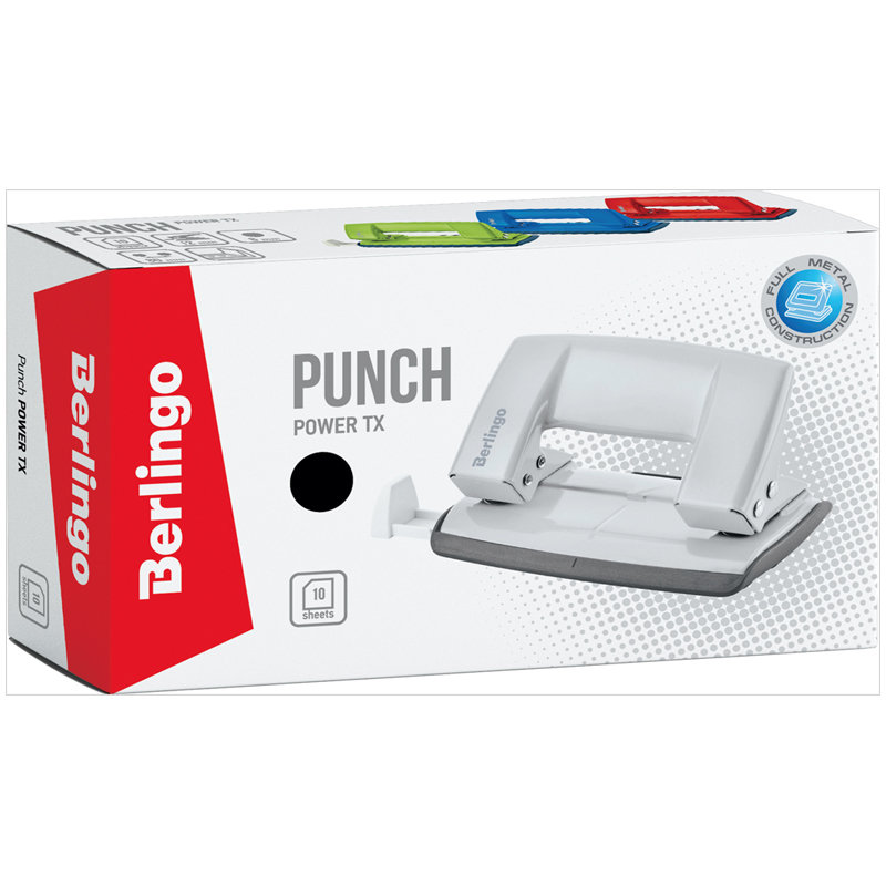 Цельнометаллический дырокол Berlingo "Power TX" выполнен в ярких модных цветах.
