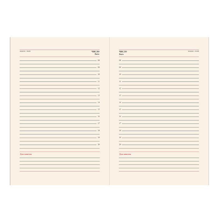 Ежедневник недатированный, выполнен из высококачественной экокожи, с выраженной фактурой под кожу, в мягкой обложке. Декорирован тиснением и срезом из розовогозолота