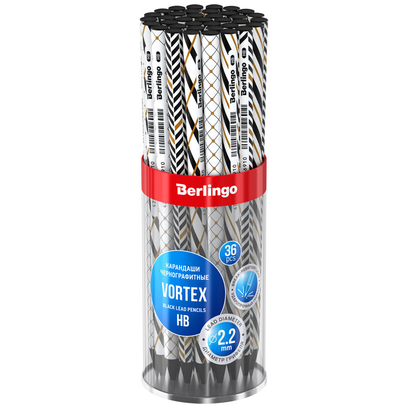 Чернографитный ударопрочный карандаш Berlingo "Vortex" из черного дерева с заточкой.