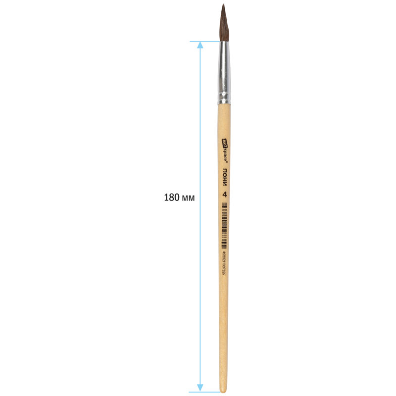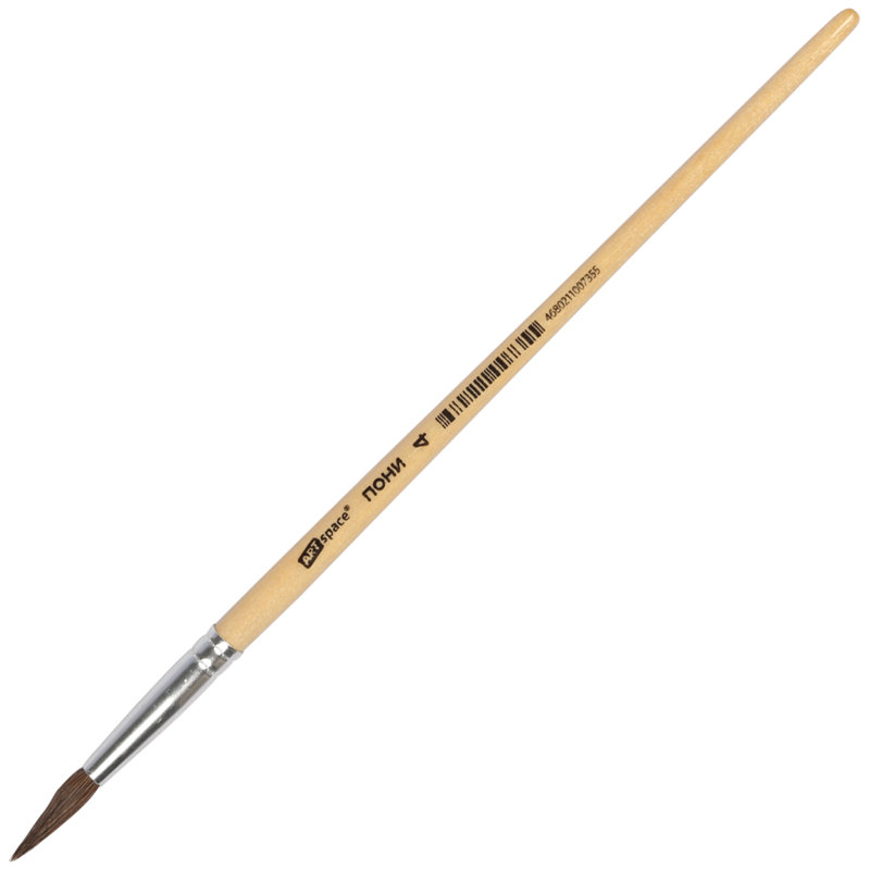 Круглая кисть из волоса пони ArtSpace №4 хорошо сохраняет форму и отлично удерживает краску. Отлично подходят для работы с разными типами краски: акварелью, гуашью, тушью. Снабжена защитным пластиковым колпачком.