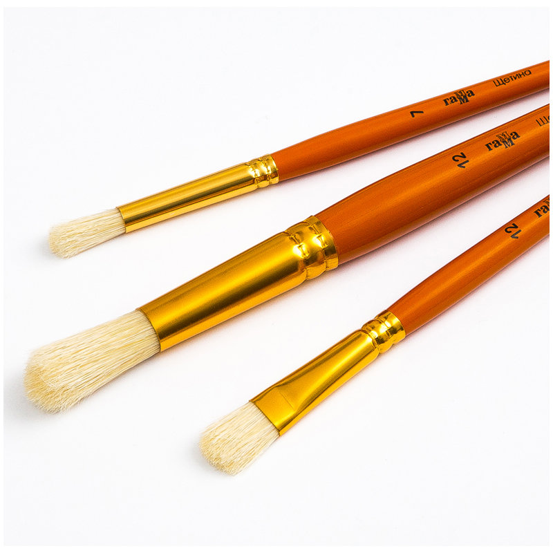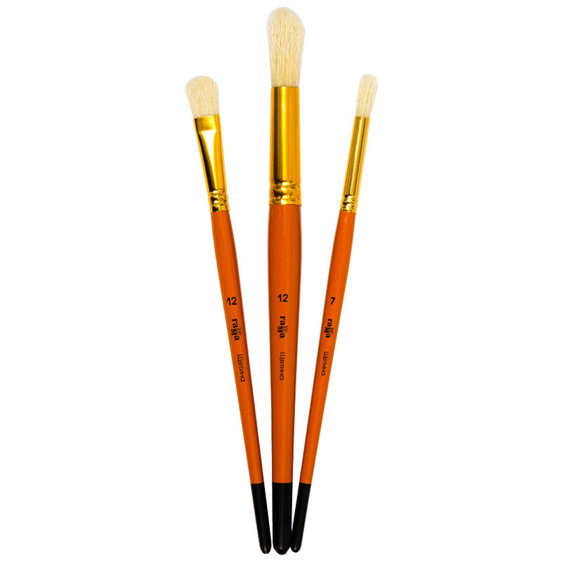 Кисти предназначены для различного прикладного творчества. Натуральный ворс способствует равномерному нанесению краски и клея. Кисть подходит как для домашнего использования, так и для использования в детских садах, школах, кружках и секциях. Кисти гипоалергенны, изготовлены из экологичных материалов. Кисти из щетины подходят для работ с густыми красками (акрил, масло), для клея. Могут использоваться и начинающими художниками. Щетина жесткая, хорошо держит форму.