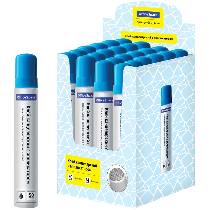 Канцелярский клей OfficeSpace предназначен для склеивания бумаги и картона, не оставляет следов. После замораживания и размораживания не теряет своих свойств. Имеет удобный флакончик с дозатором, наносится точно и экономно.