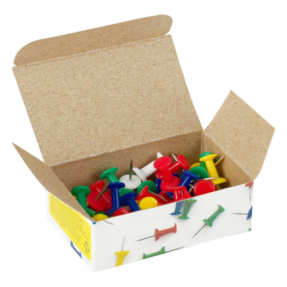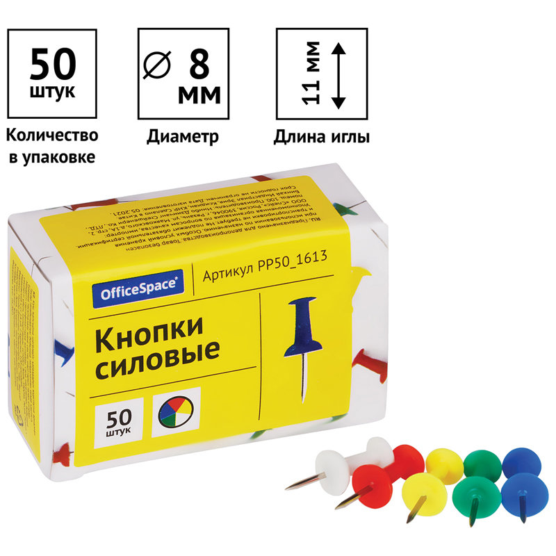 Кнопки изготовлены из металла с никелированным покрытием. Кнопки предназначены для крепления листов с информацией к офисным пробковым доскам и другим поверхностям.