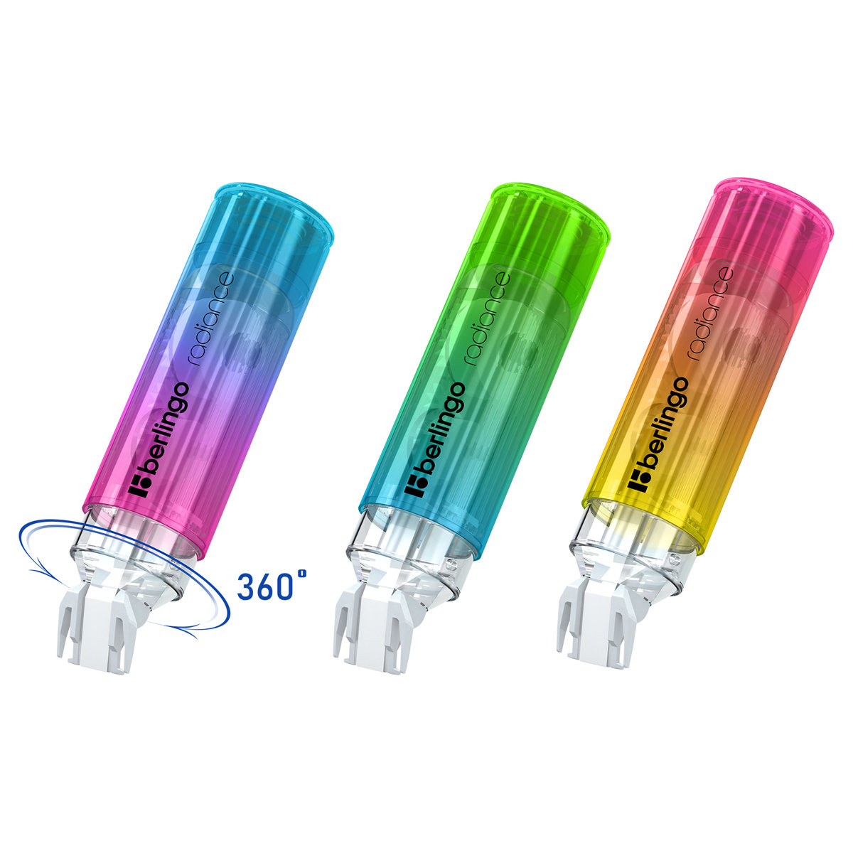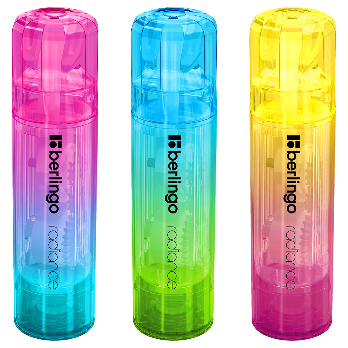 Корректирующая лента "Radiance". Дизайн корпуса выполнен в ярких сочетаниях цветов ассорти в стиле градиент. Подходит для исправления машинописного или рукописного текста. Плотное и точное покрытие, не требует времени на высыхание. Имеет подвижный наконечник, благодаря которому лента может использоваться под любым углом. Стабилизатор позволяет добиться ровной линии.