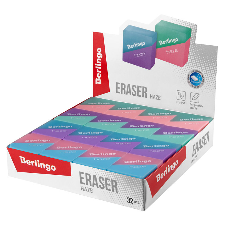 Ластики Berlingo "Haze " выполнены из пластика. Прекрасно справляются с линиями от чернографитного карандаша, не оставляют следов и грязных разводов после себя.