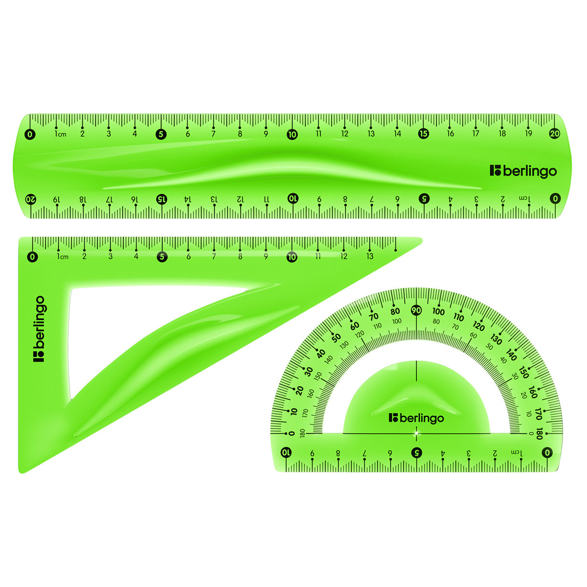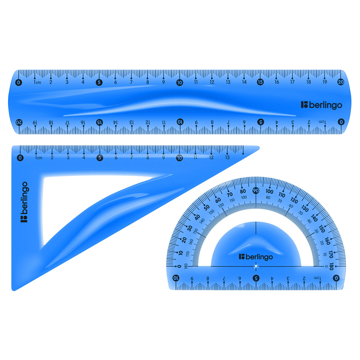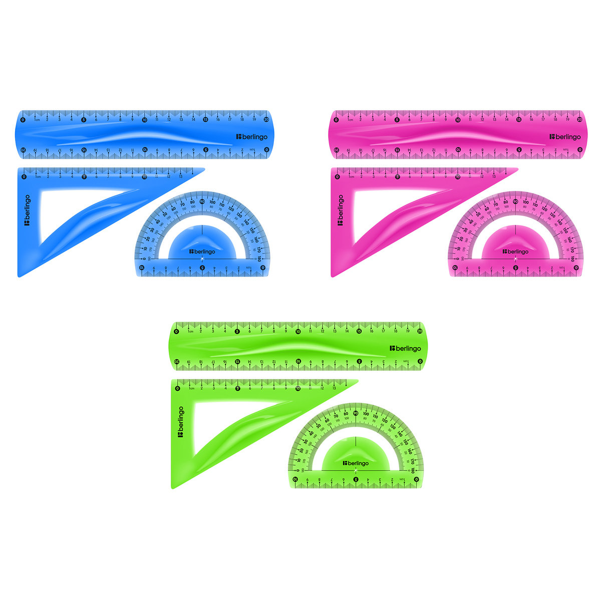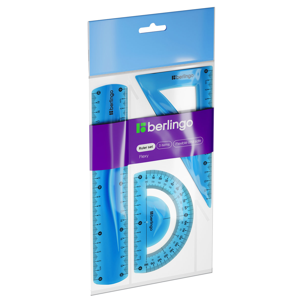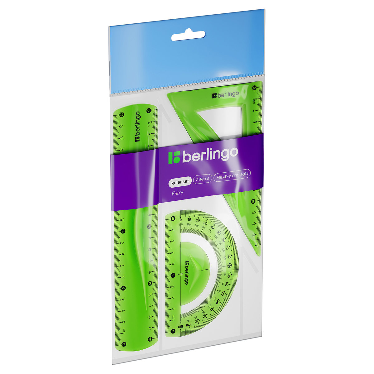 Набор для черчения Berlingo Flexy: треугольник 14 см, линейка 20 см, транспортир, гибкий может понадобиться при изучении любого школьного предмета.