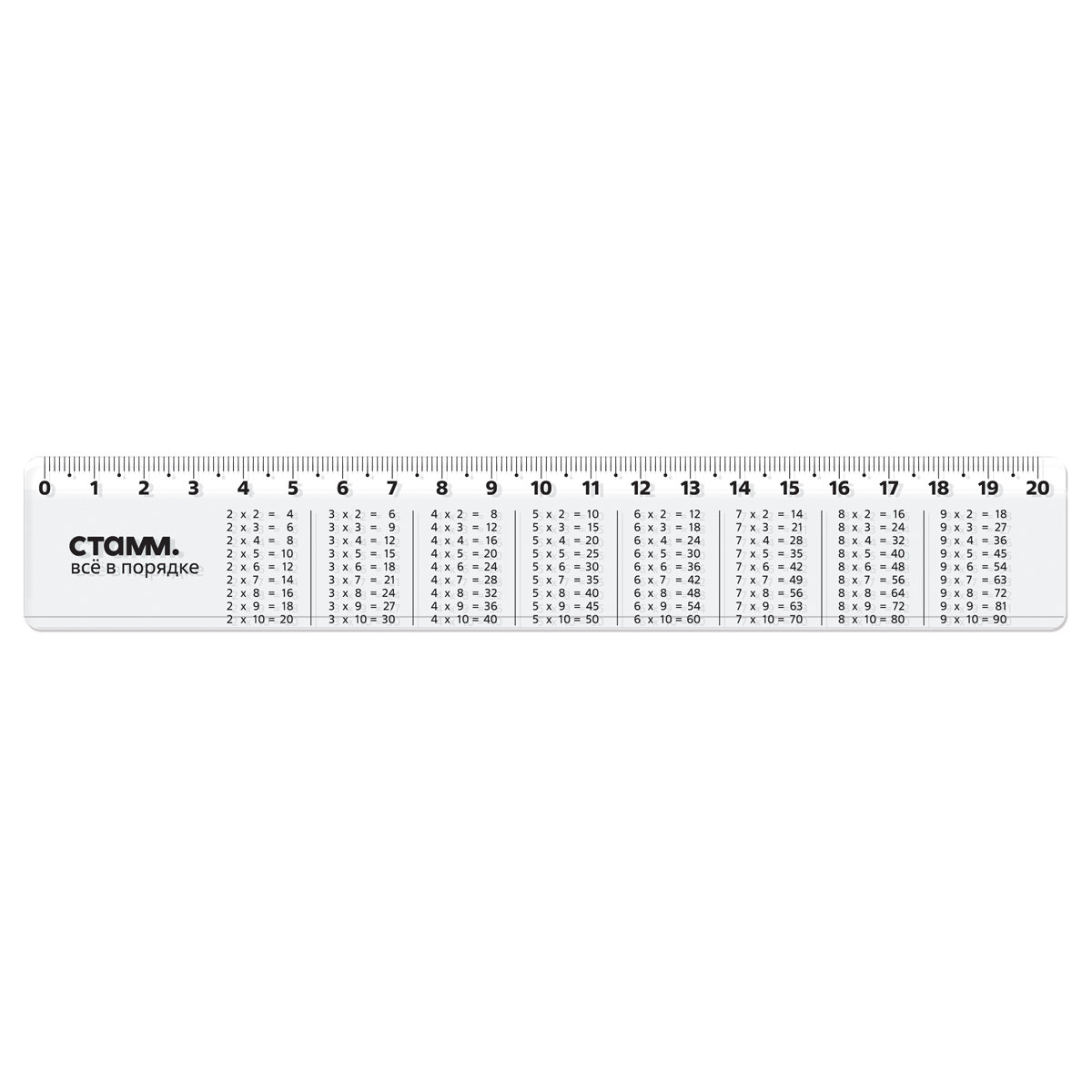 Широкая линейка-шпаргалка со справочная информацией. Прозрачная и бесцветная с гладкой глянцевой поверхностью. Удобный размер линейки - 20 см, специально разработан под формат тетради. Имеет четко нанесенную информацию и шкалу делений, а также безопасные закругленные углы.