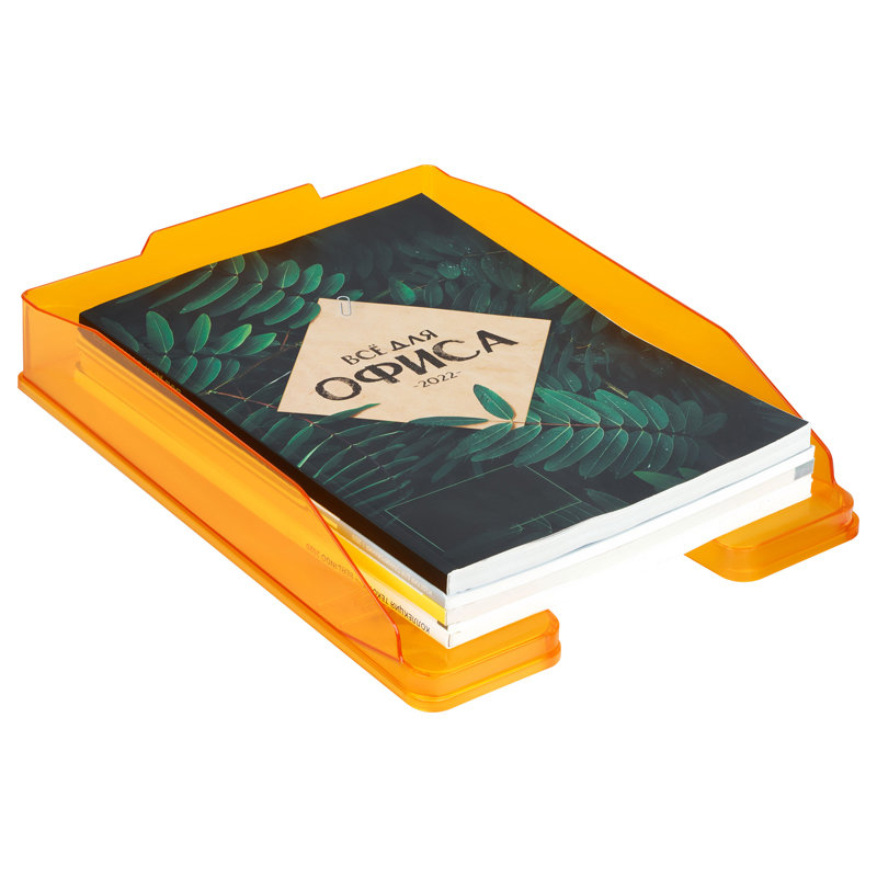 Лоток горизонтальный "ЭКСПЕРТ" тонированный манго. Экономичная транспортировка и хранение. Предусмотрена возможность установки одного лотка на другой.