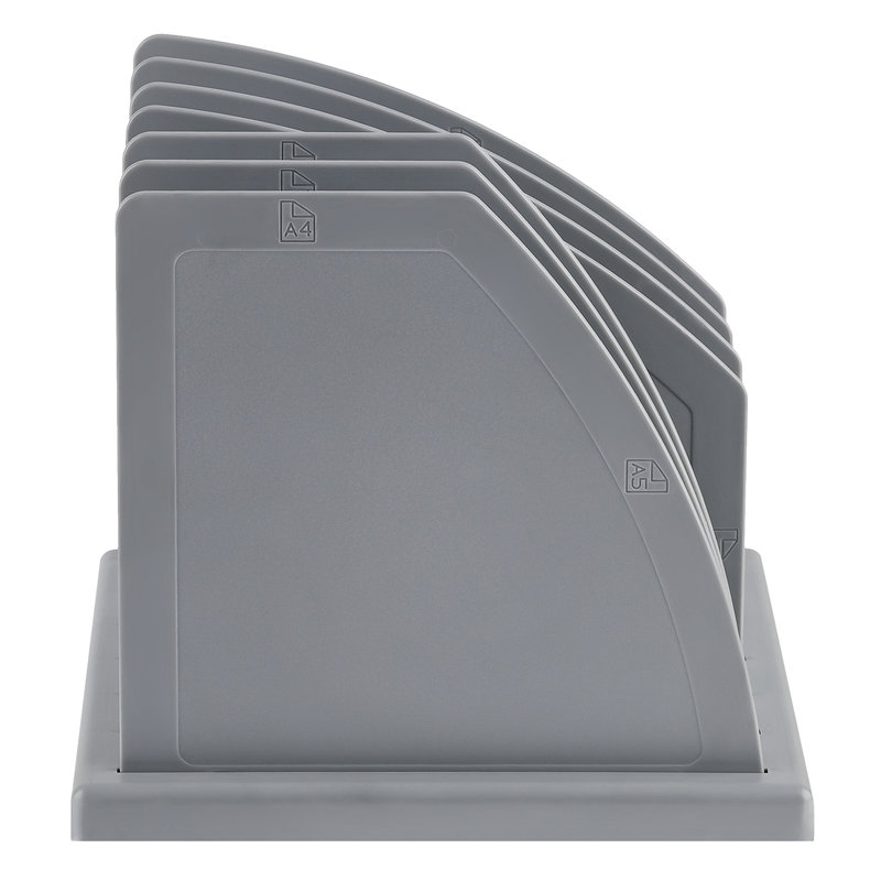 Подставка предназначена для размещения журналов и бумаг форматов А4, А5. Возможна установка перегородок в вертикальном и горизонтальном положениях. Простая сборно-разборная конструкция, имеет 6 отделений. Удобно транспортировать и хранить.