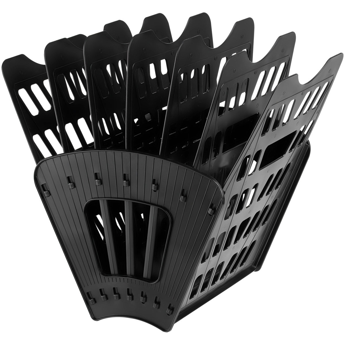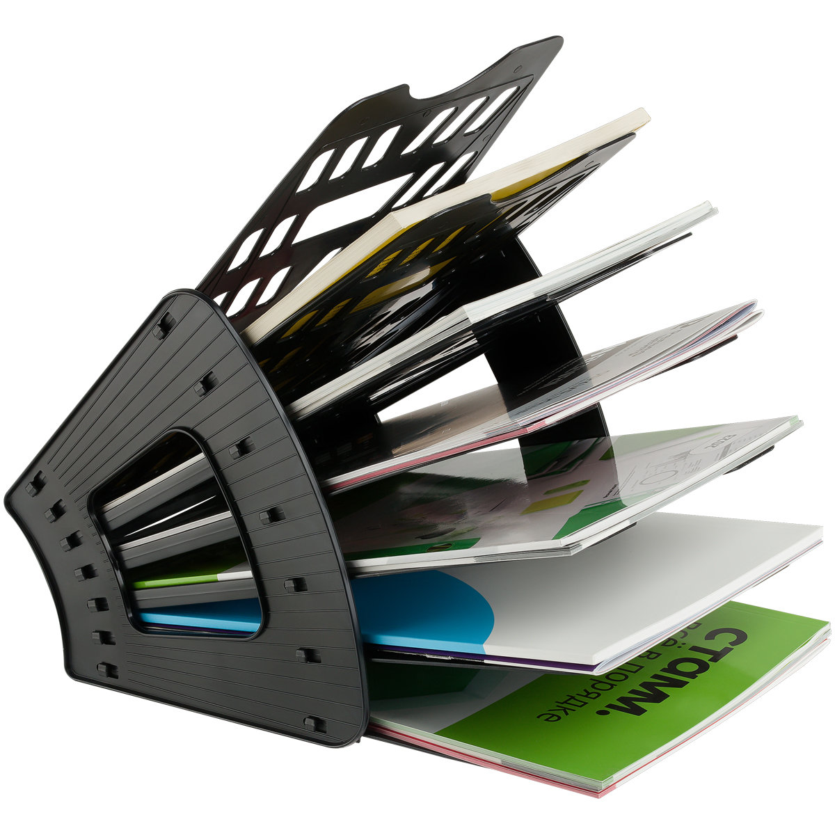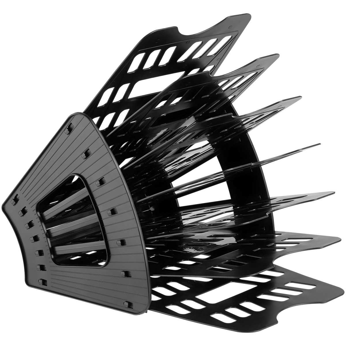 Лоток для бумаг "Стамм" выполнен из высококачественного пластика с полированной гладкой поверхностью. Лоток состоит из двух боковых стоек и семи секций, на рабочем столе устанавливается как горизонтально, так и вертикально, имеет специальные отверстия для крепления на стену. Легко собирается и разбирается, имеет четыре отделения для листов формата А4.