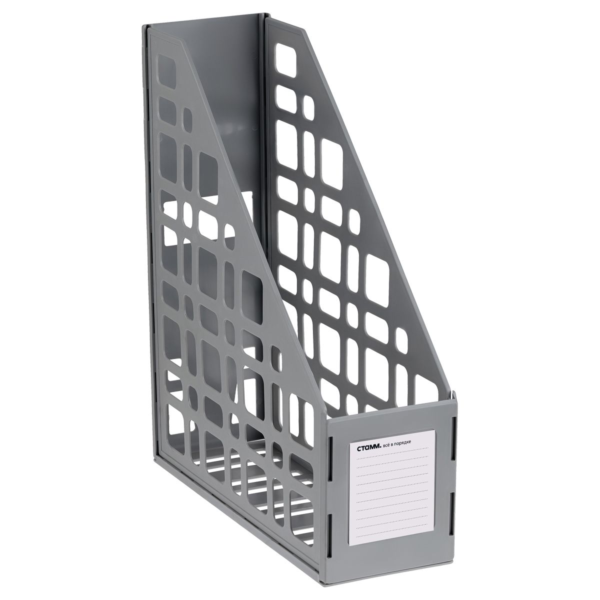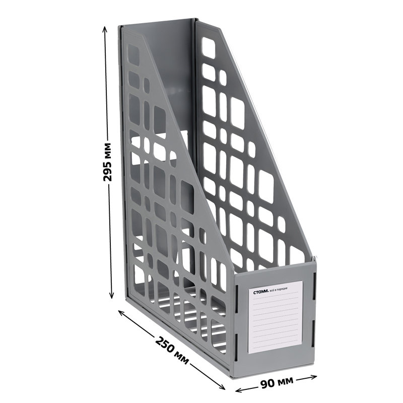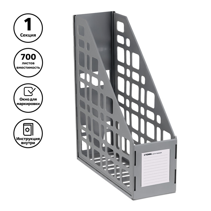 Вертикальный лоток предназначен для хранения журналов, проспектов, каталогов, документации формата А4. Имеет сетчатую поверхность. Сборно-разборная конструкция. Прочный, устойчивый корпус. Это доступное по цене, качественное и практичное изделие организует ваш творческий беспорядок.