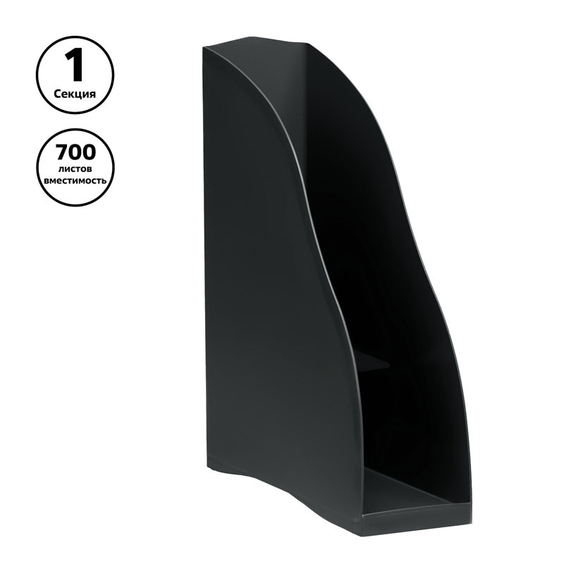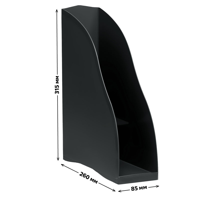 Лоток вертикальный для документации формата А4. Оригинальный дизайн, цельнолитые стенки. Эффектное сочетание шагреневой поверхности с гладкими линиями. Имеется отверстие на торцевой части для удобной переноски. Устойчивый, прочный корпус. Изготовлен из полистирола. Ширина лотка 8,5см.