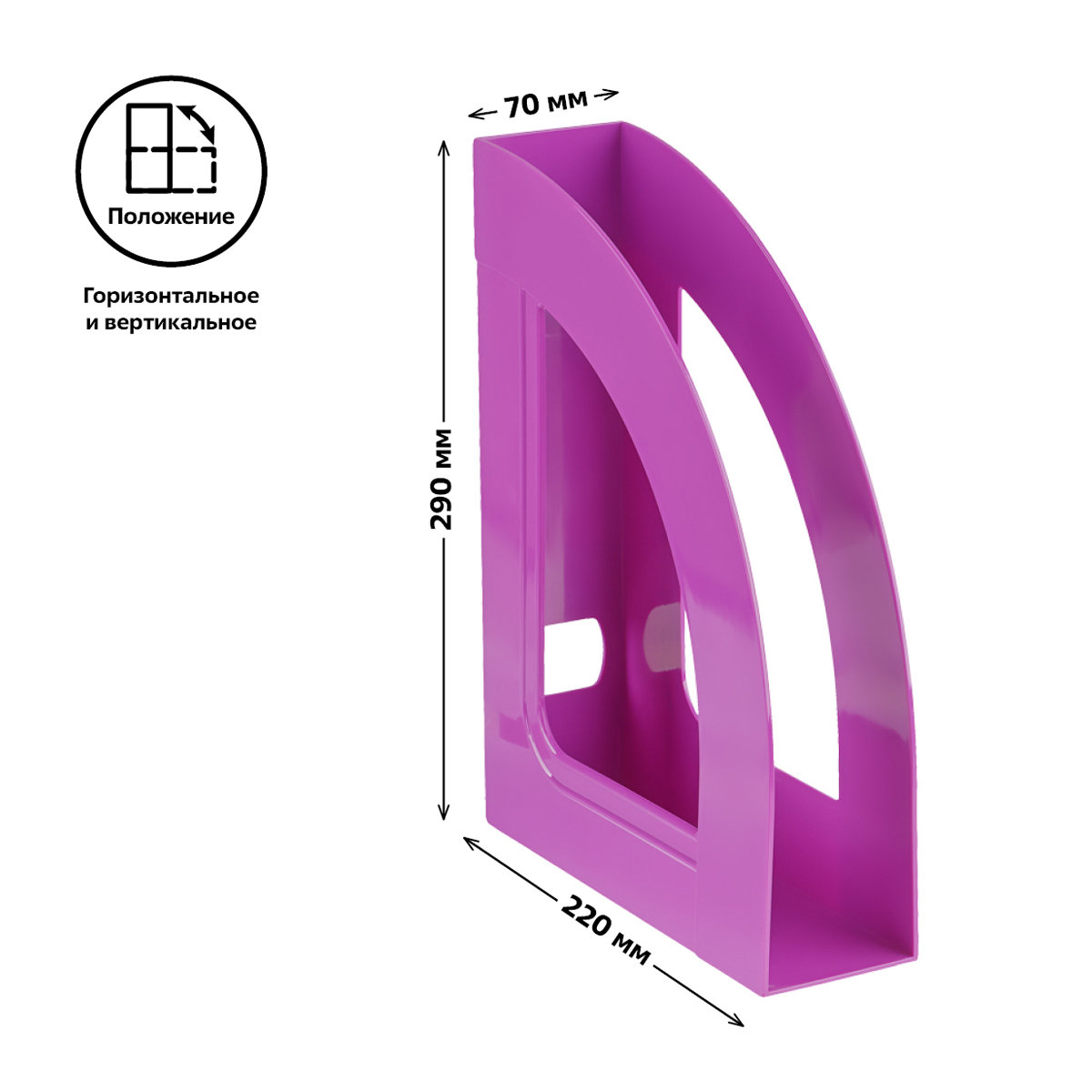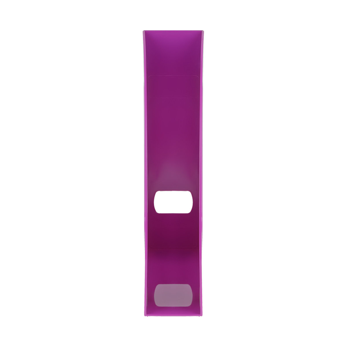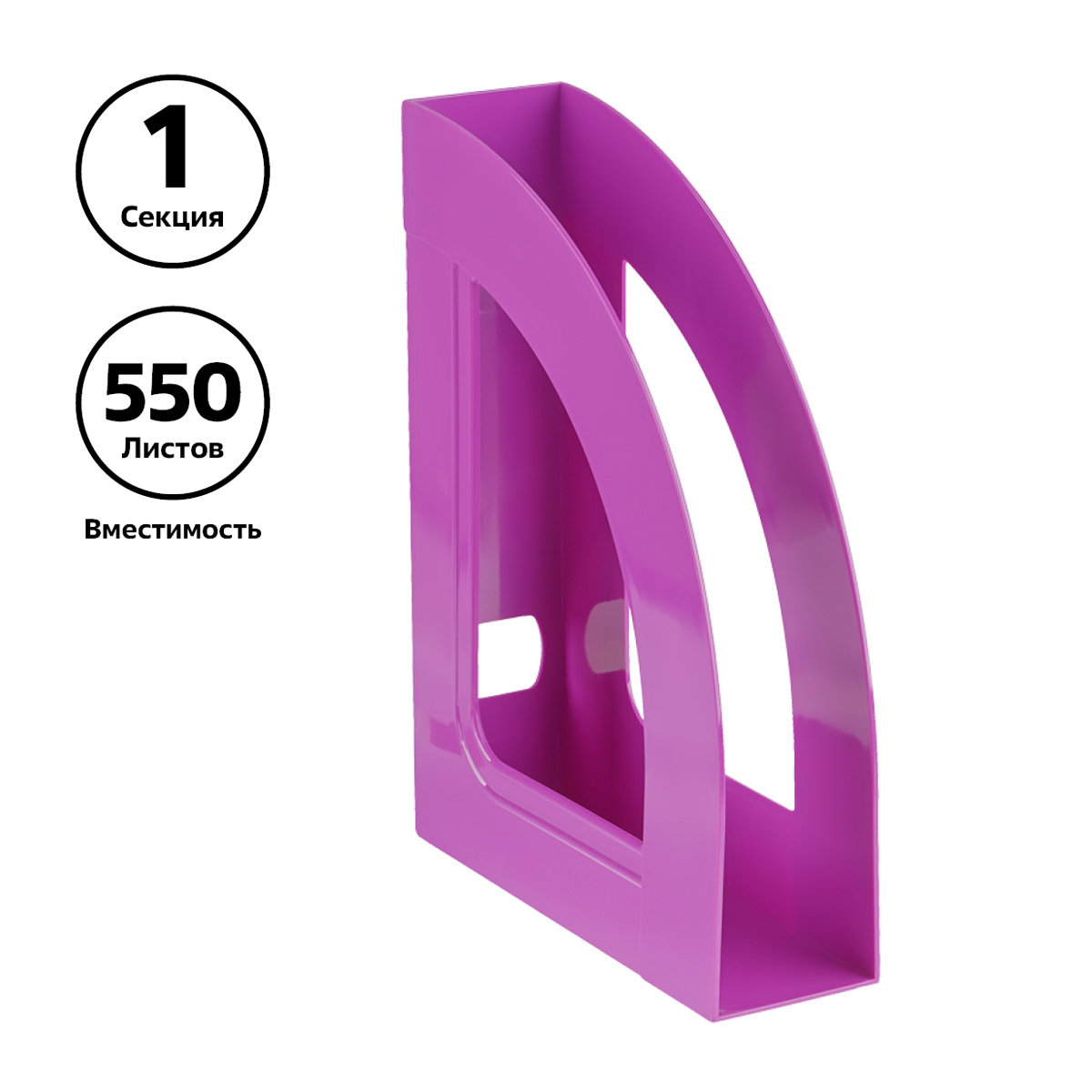 Лоток вертикальный для бумаг формата А4. Возможность установки в 2-х положениях - вертикальном и горизонтальном. Легкий, прочный, устойчивый корпус. На торцевой части есть отверстие для удобной переноски. Конструкция лотка имеет окно для маркировки, предусматривающее возможность смены этикеток. Изготовлен из качественного полистирола. Цвет лотка - фиолетовый.