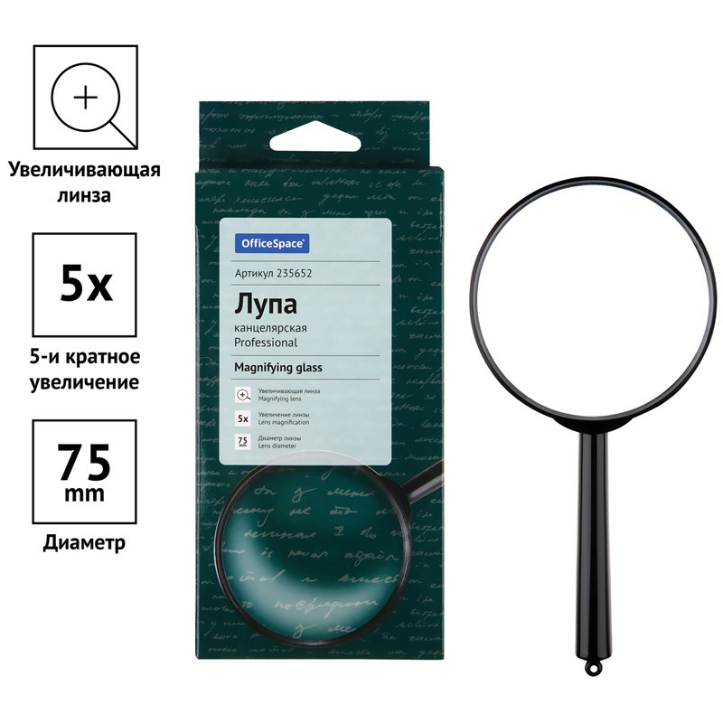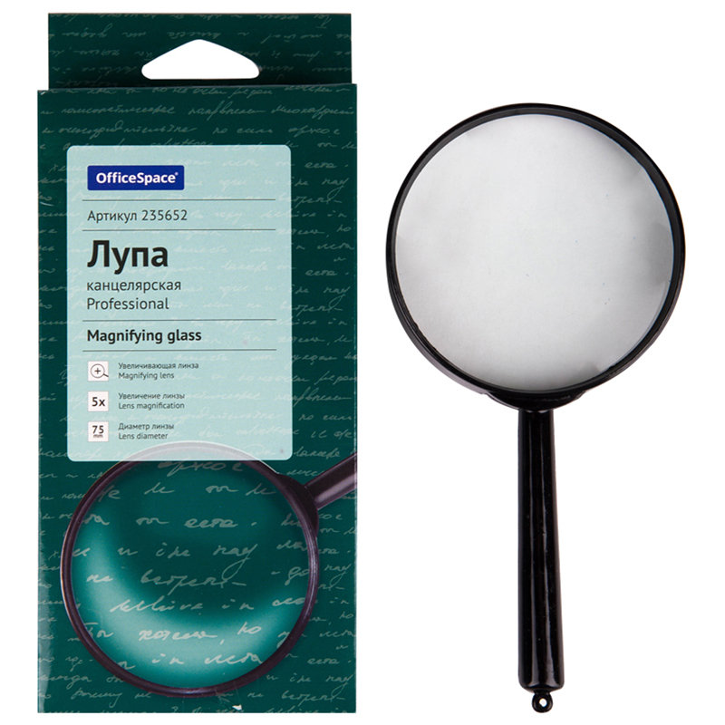 Лупа "OfficeSpace" в пластиковой оправе предназначена для визуального увеличения мелких объектов и изображений. Стеклянная линза имеет пятикратное увеличение.