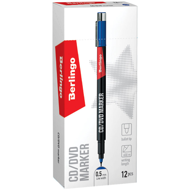 Маркер "Berlingo" предназначен для безопасного письма на поверхностях CD/DVD дисков. Плотный колпачок с металлическим клипом предотвращает высыхание. Цвет колпачка соответствует цвету чернил.