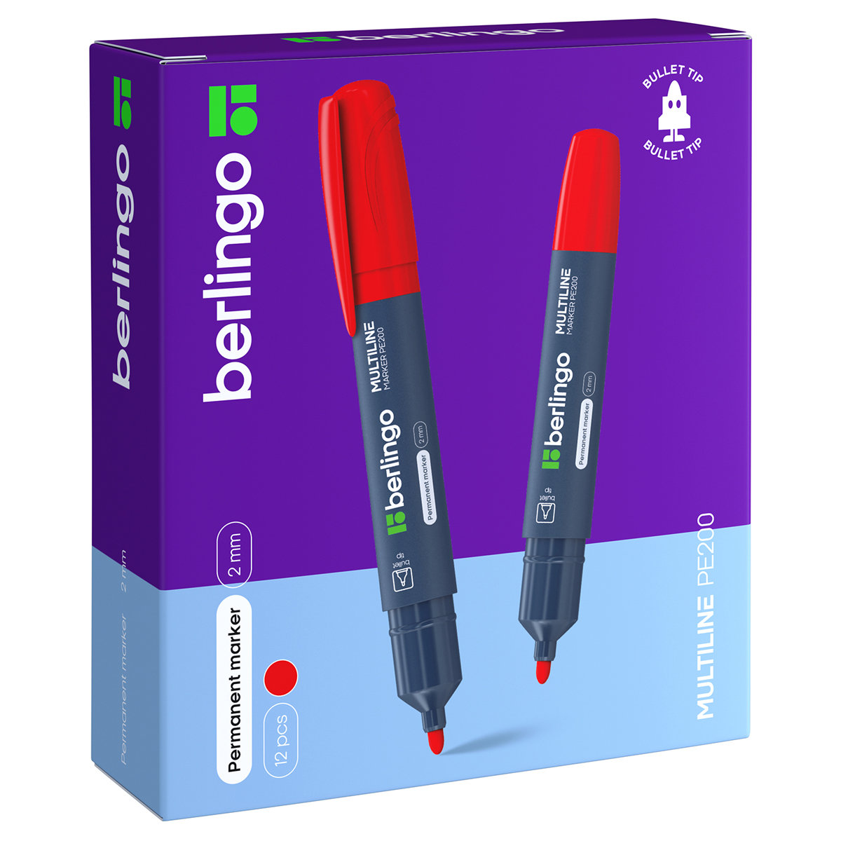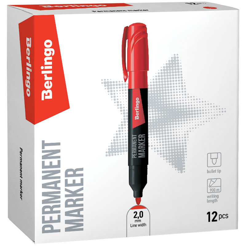 Маркер перманентный "Berlingo " подходит для письма на любых поверхностях. Чернила на спиртовой основе. Плотный колпачок с клипом надежно предотвращает высыхание. Цвет колпачка соответствует цвету чернил. Закругленный пишущий узел.