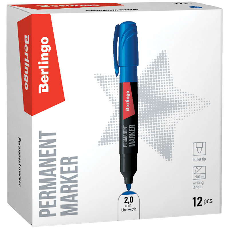 Перманентный маркер Berlingo предназначен для письма на любой поверхности. Заправлен водостойкими чернилами на спиртовой основе, которые после нанесения быстро высыхают и не стираются.