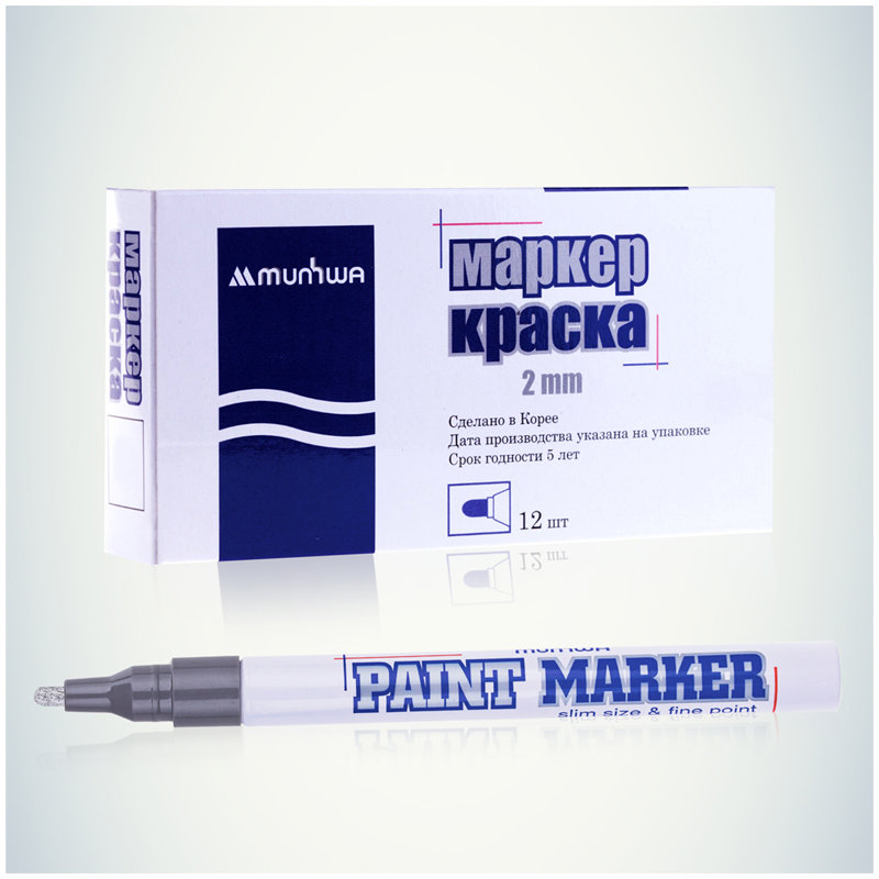 Водостойкая краска "MunHwa" на нитрооснове не поддается атмосферным воздействиям и широко применяется в производстве для маркировки изделий из пластика, дерева, металла, камня, стекла, резины. За счет нитрокраски, которая является наполнением данного вида маркеров изображение, нанесенное на поверхность быстро засыхает, и не смывается. Подвижный наконечник-дозатор регулирует поступление краски.