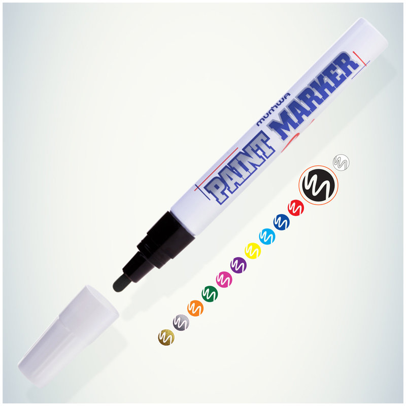 Водостойкая краска "MunHwa" на нитрооснове не поддается атмосферным воздействиям и широко применяется в производстве для маркировки изделий из пластика, дерева, металла, камня, стекла, резины. За счет нитрокраски, которая является наполнением данного вида маркеров изображение, нанесенное на поверхность быстро засыхает, и не смывается. Подвижный наконечник-дозатор регулирует поступление краски.