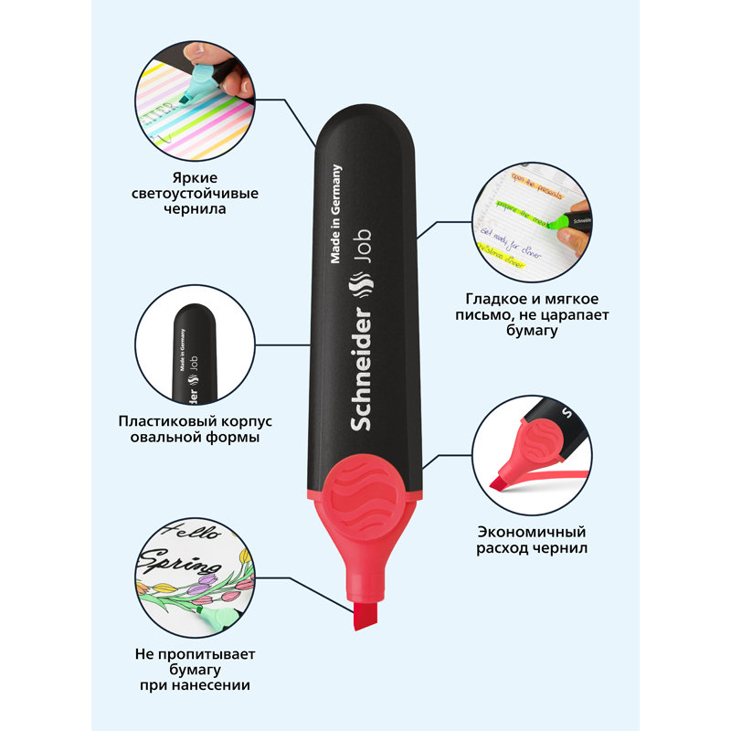 Универсальный текстовыделитель, предназначен для выделения необходимых мест в печатном и рукописном тексте на простой, ксероксной и факсовой бумаге. Скошенный наконечник позволяет проводить линии от 1 до 5 мм. Светостойкие чернила ярких неоновых цветов. Корпус из полипропилена предотвращает испарение чернил и обеспечивает длительный срок хранения. Награжден премией в области дизайна Red Dot Design Award.