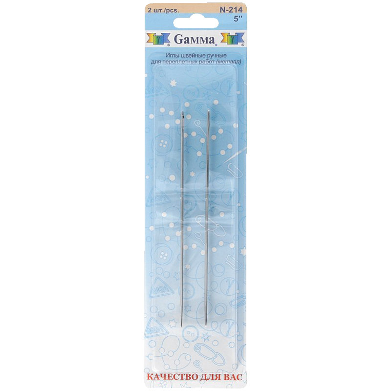 Игла "Gamma" очень прочная, стального цвета, качественная и удобная в работе. Подходит для переплетных работ 5", а так же для шитья мягких игрушек.