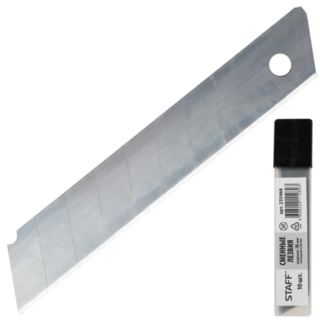 В наборе 10 лезвий для канцелярского ножа "OfficeSpace" в пластиковой коробке.