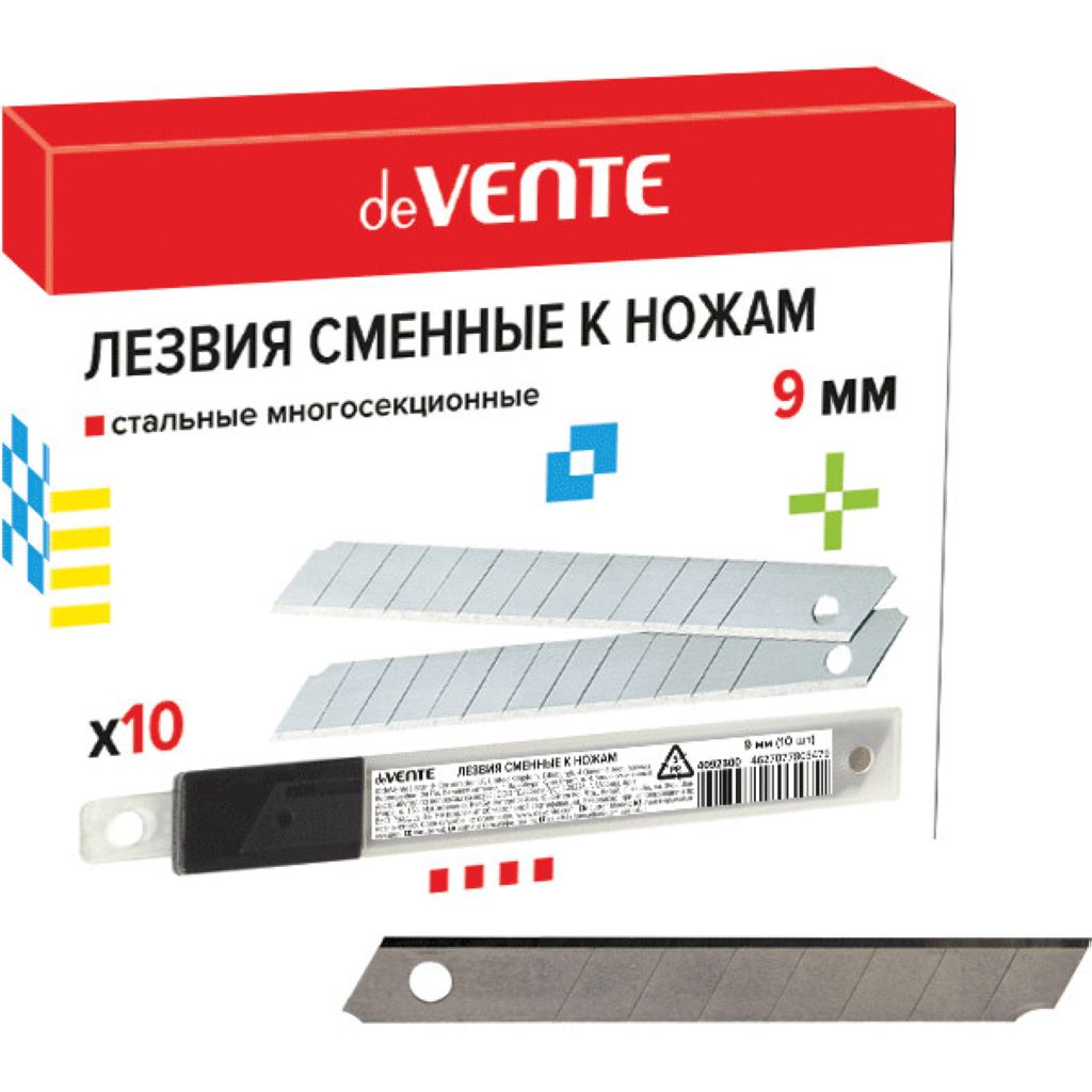Лезвия сменные "deVENTE" к ножам 09 мм, 10 шт в пластиковом футляре, пластиковый блистер