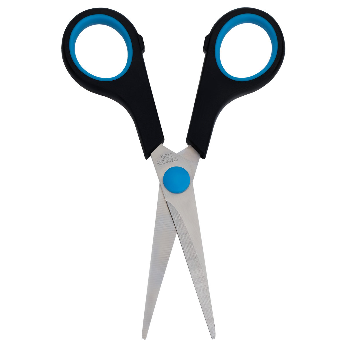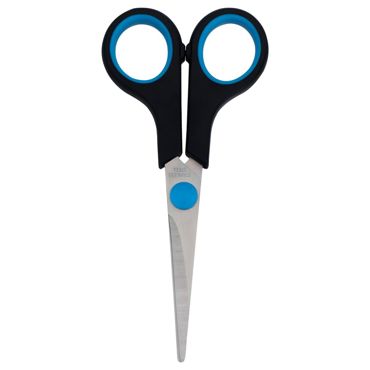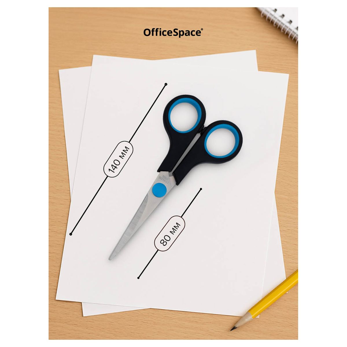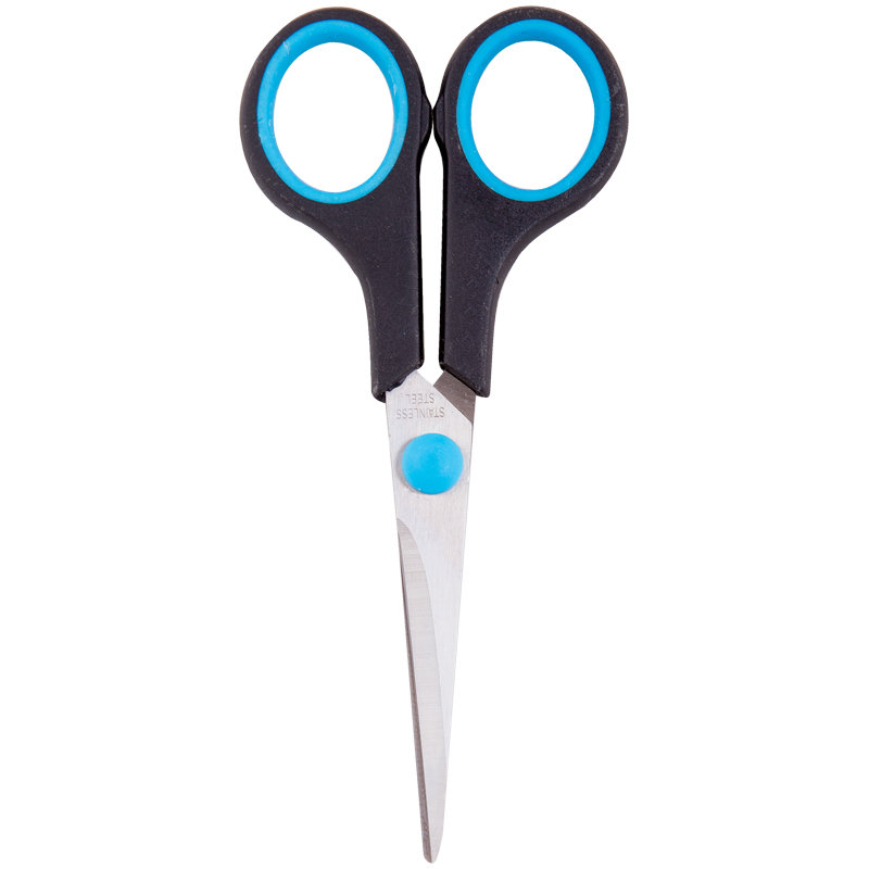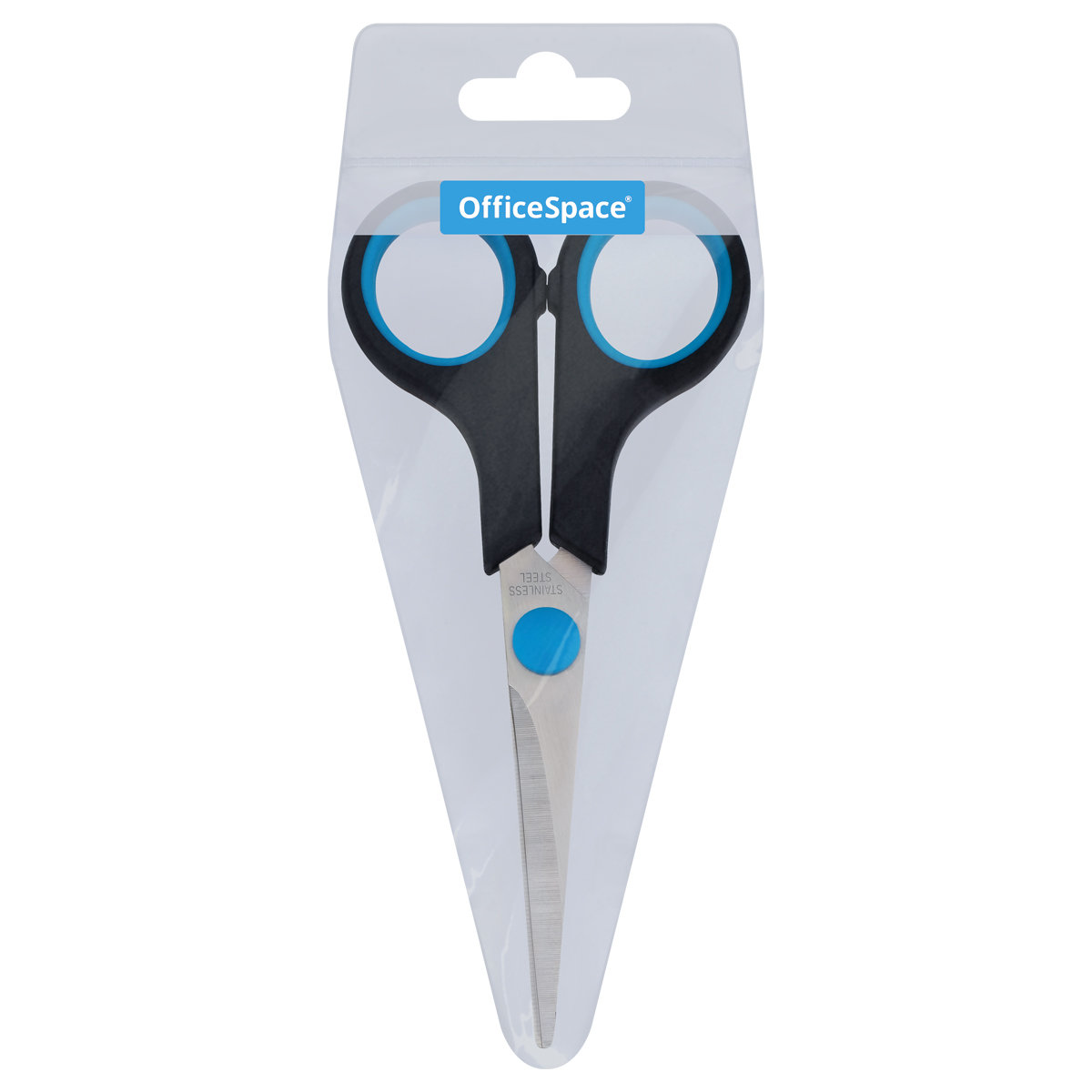 Ножницы офисные, длина 14см, лезвия с заточкой, черные, упакованы в ПВХ чехол с европодвесом.