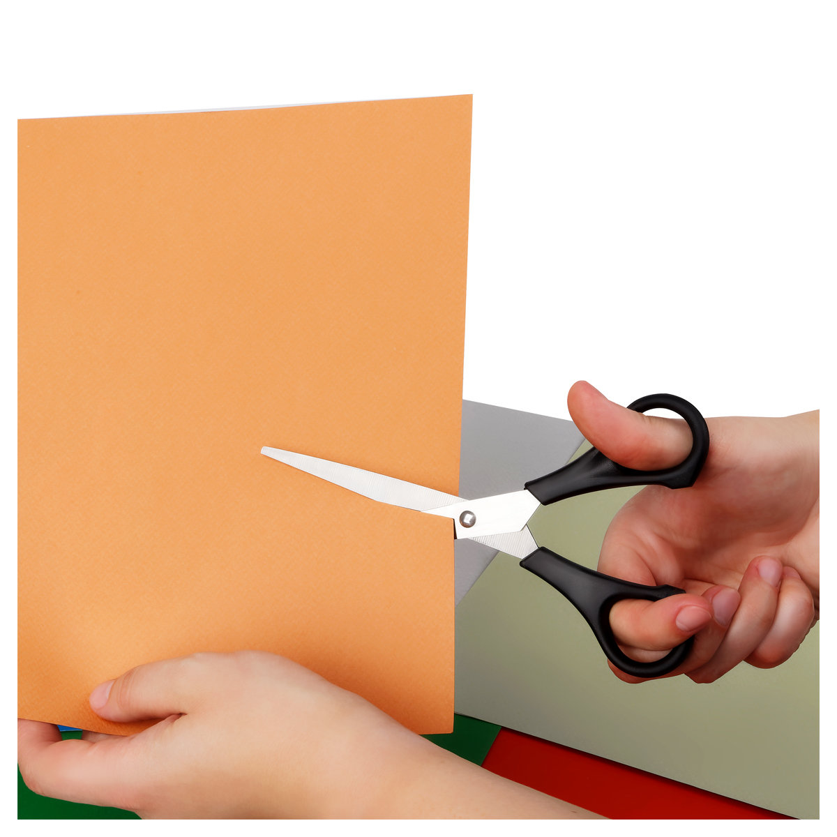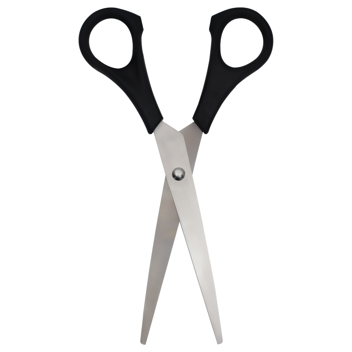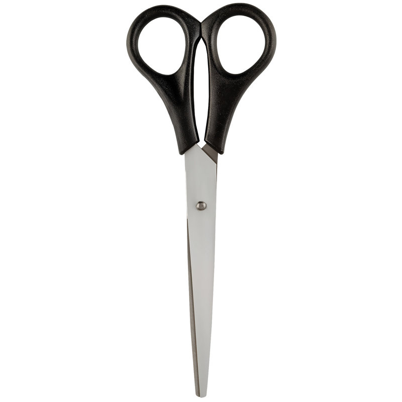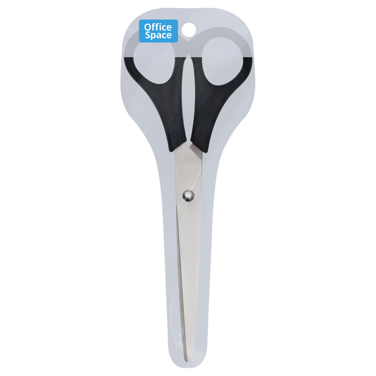 Ножницы офисные, длина 20 см, лезвия с заточкой, черные ручки, упакованы в ПВХ чехол с европодвесом