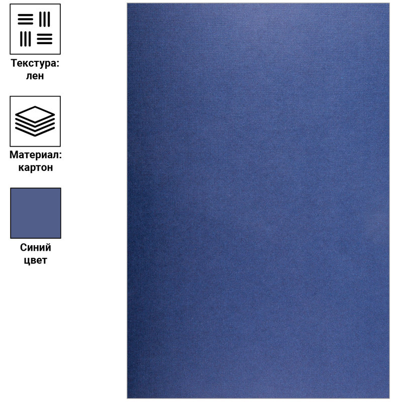 Выполнена из картона синего цвета с тиснением под лён.