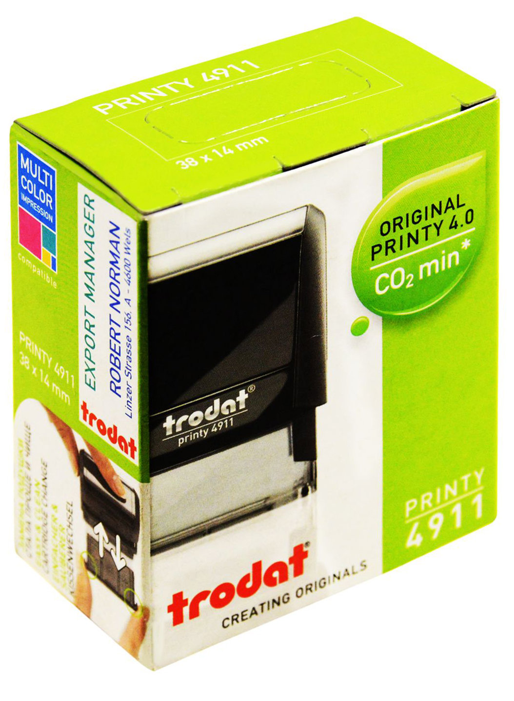Оснастка для штампа "Trodat" имеет прочный пластиковый корпус с автоматическим окрашиванием. Оттиск проставляется практически бесшумно, легким нажатием руки. Модель оснащена кнопкой блокировки.