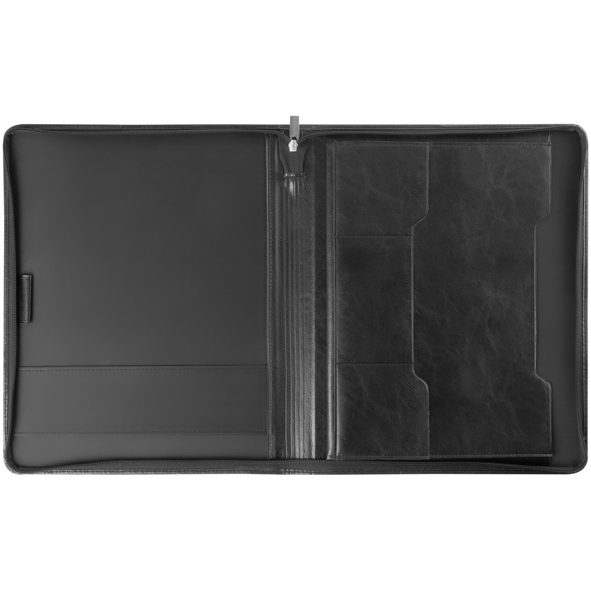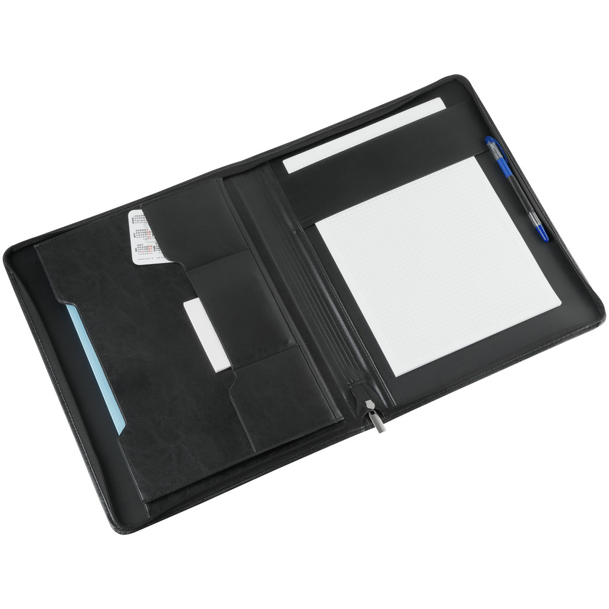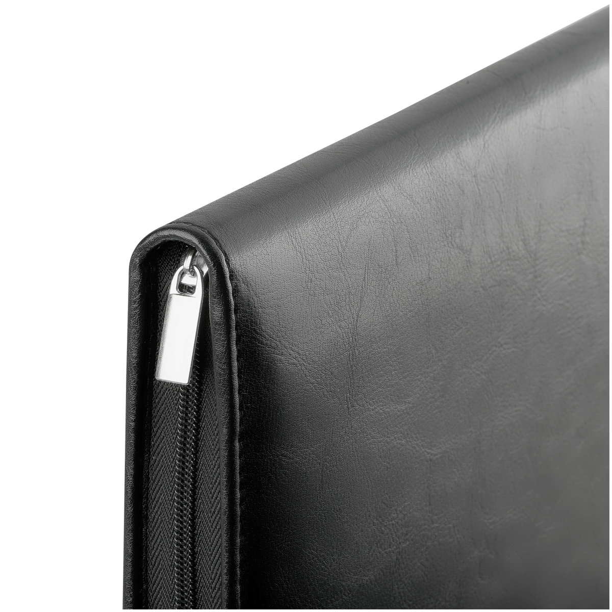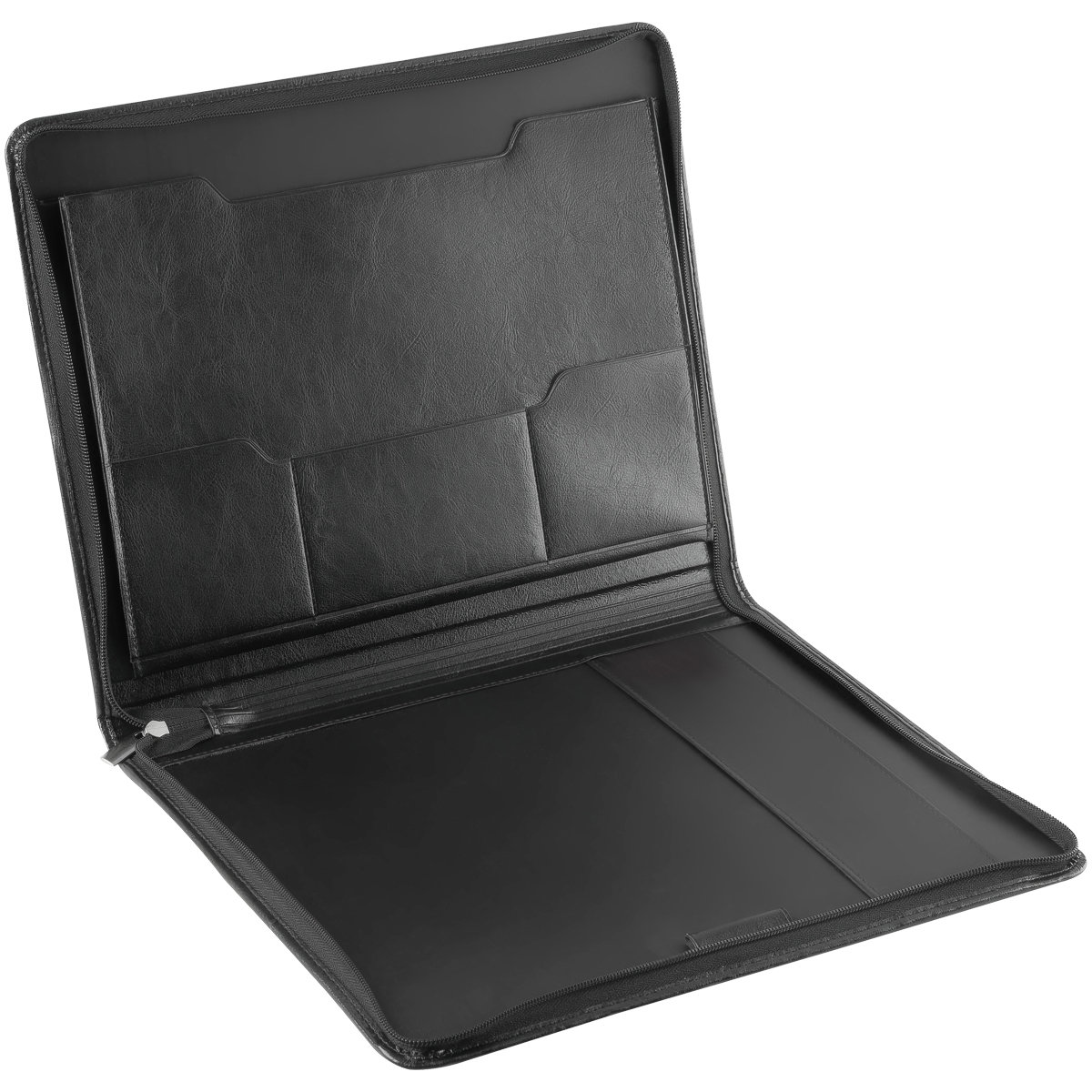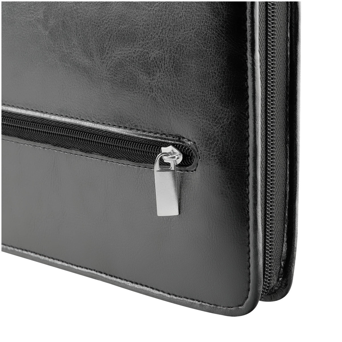 Деловая папка для документов формата А4 из искусственной кожи. Папка создана в лаконичном дизайне без ручек, закрывается на молнию. Внутри отделения для бумаг, карманы для визиток.