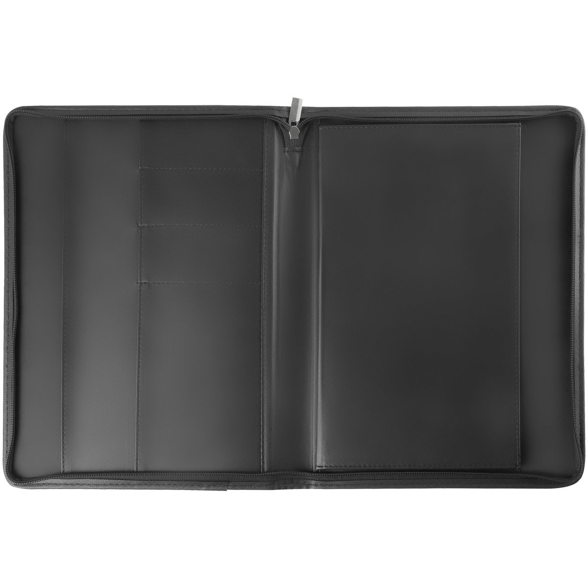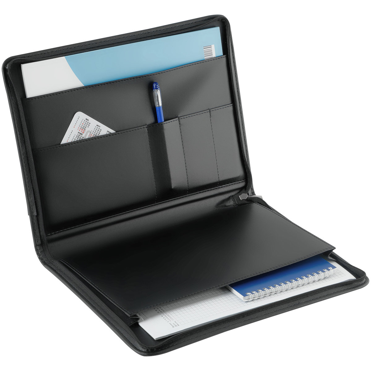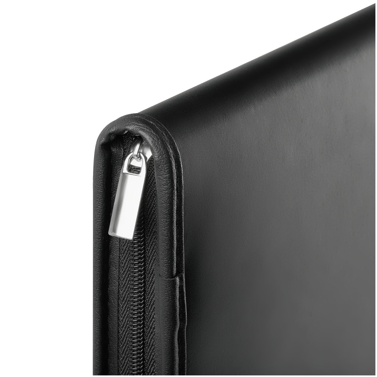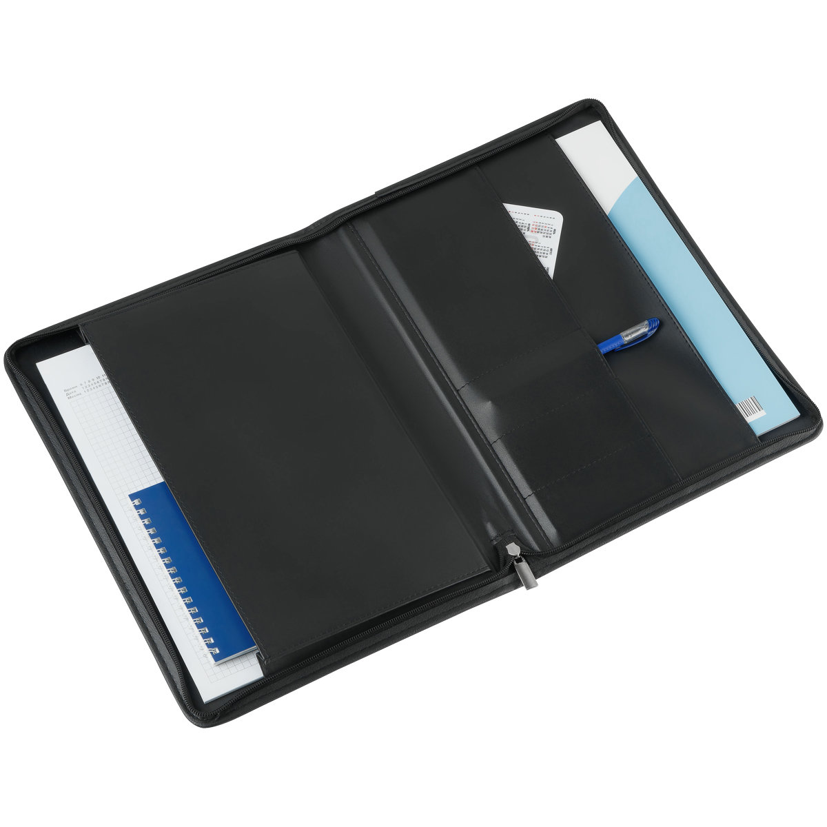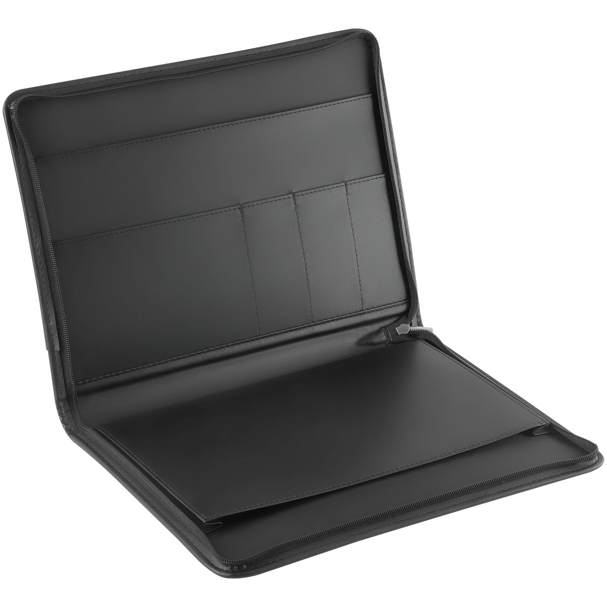 Деловая папка для документов формата А4 из искусственной кожи. Папка создана в лаконичном дизайне без ручек, закрывается на молнию. Внутри отделения для бумаг, карманы для визиток.