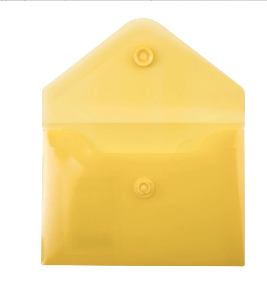 Папка-конверт с гладкой фактурой малого формата А7 изготовлена из плотного прозрачного пластика желтого цвета толщиной 180 мкм. Закрывается на защелку-кнопку, что делает удобным частое использование и обеспечивает быстрый доступ к ее содержимому. Папка способна вместить до 50 листов стандартной плотности.
