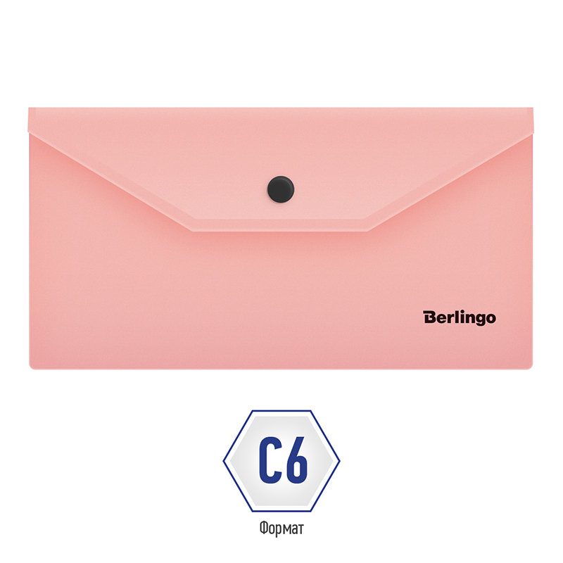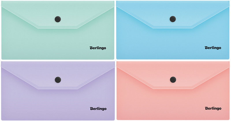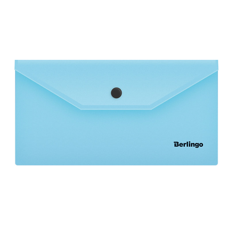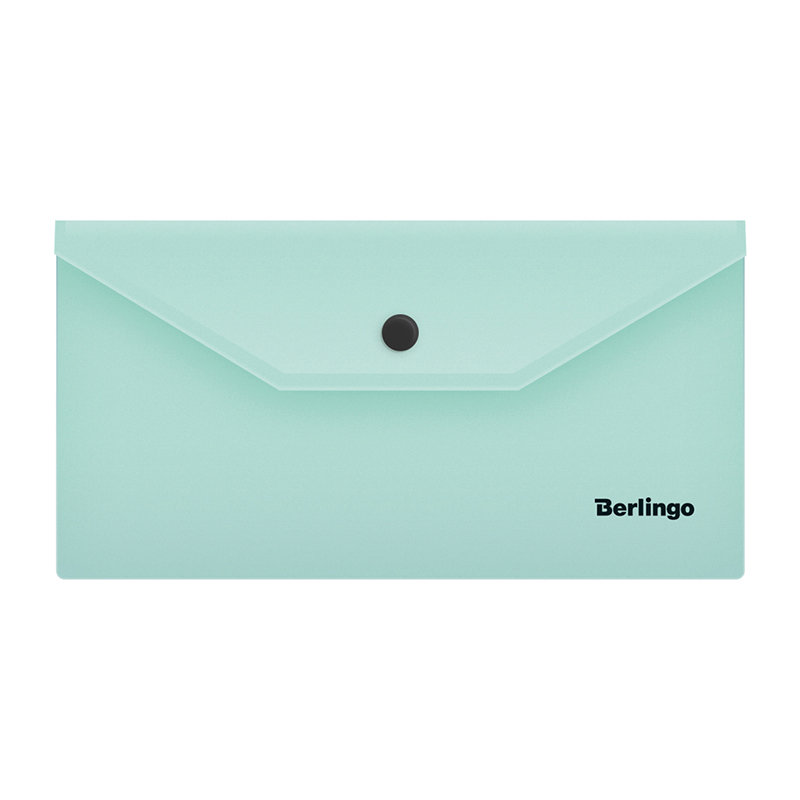 Папка-конверт на кнопке Berlingo серии Instinct размера С6 (223*120 мм) изготовлена из плотного непрозрачного пластика цвета аквамарин толщиной 0,18 мм.