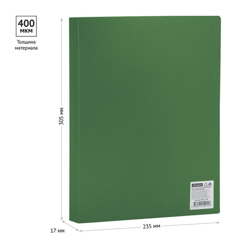 Папка с файлами "OfficeSpace" изготовлена из качественного пластика толщиной 0,5 мм. Папка с прозрачными листами-карманами рекомендуется для хранения материалов и документов, требующих упорядоченности и наглядного обзора. Документам не требуется перфорация дыроколом.