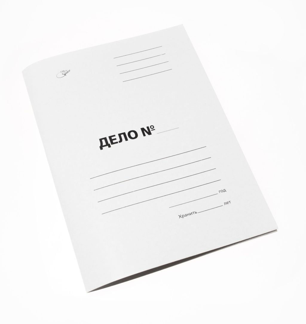 Папка-скоросшиватель «Дело» формата А4, изготовлена из мелованного и немелованного картона различной плотности. Титульный лист содержит линованный идентификатор.