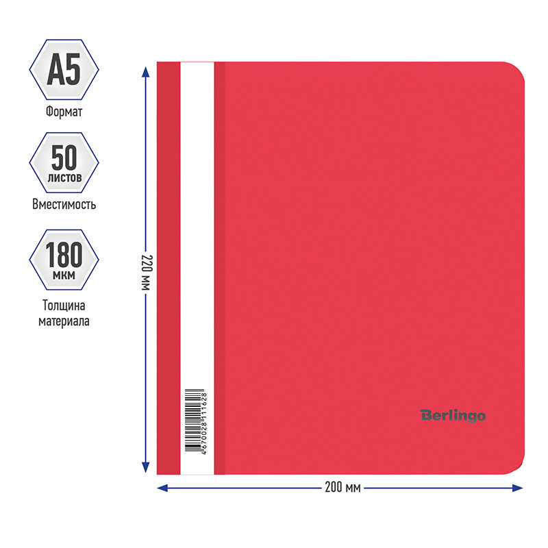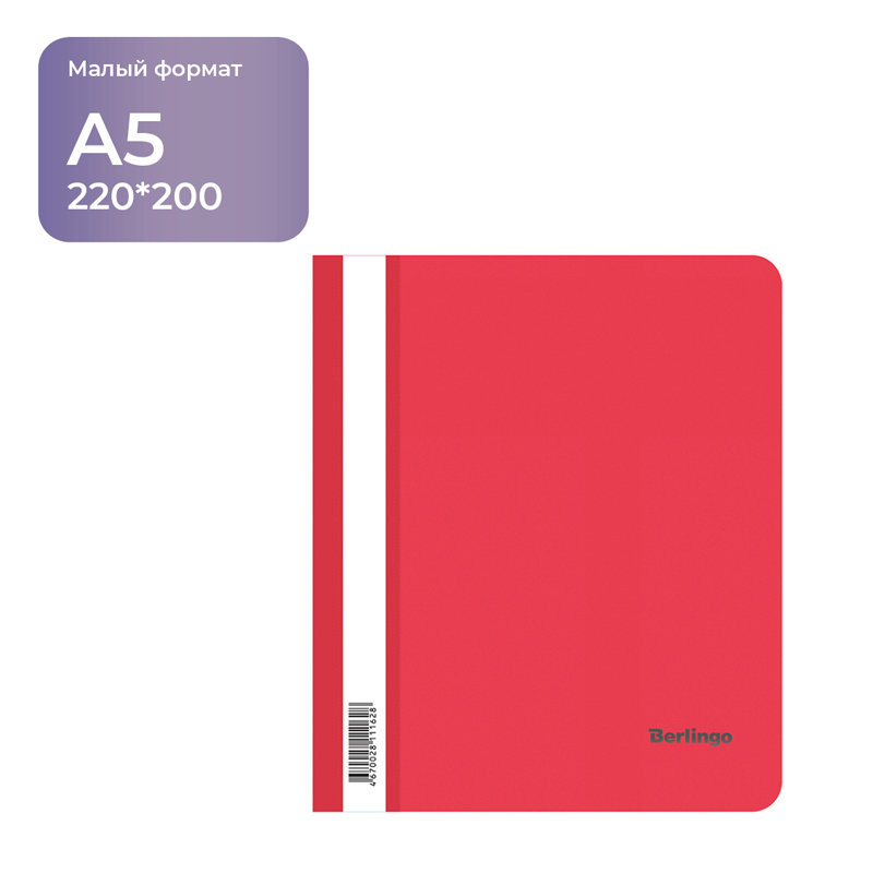 Папка-скоросшиватель формата А5 для хранения перфорированных листов. Имеет прозрачный титульный лист и усиленный корешок с прозрачным карманом для маркировки. Корешок украшен логотипом «inФОРМАТ» серебристого цвета.