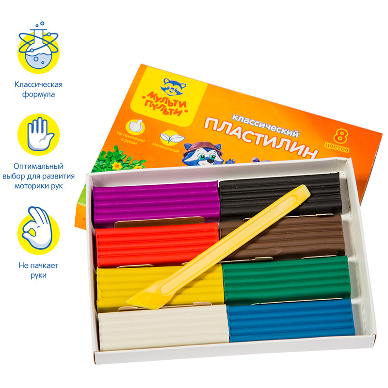 Пластилин предназначен для лепки и моделирования. Не прилипает к рукам, имеет яркие, сочные цвета, которые легко смешиваются друг с другом.