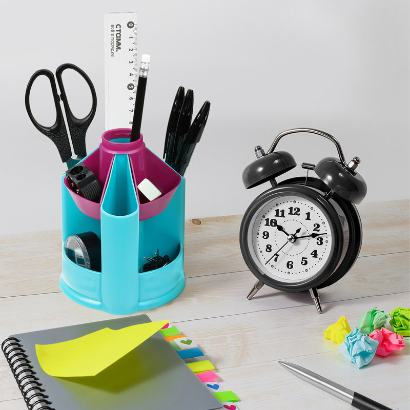 Стильная и практичная подставка для канцелярских принадлежностей "Mini Desk" (без наполнения). Позволит систематизировать и привести в порядок канцелярские атрибуты на вашем рабочем месте. 10 удобных отделений с различными конструктивными особенностями. Вращение на 360 градусов.