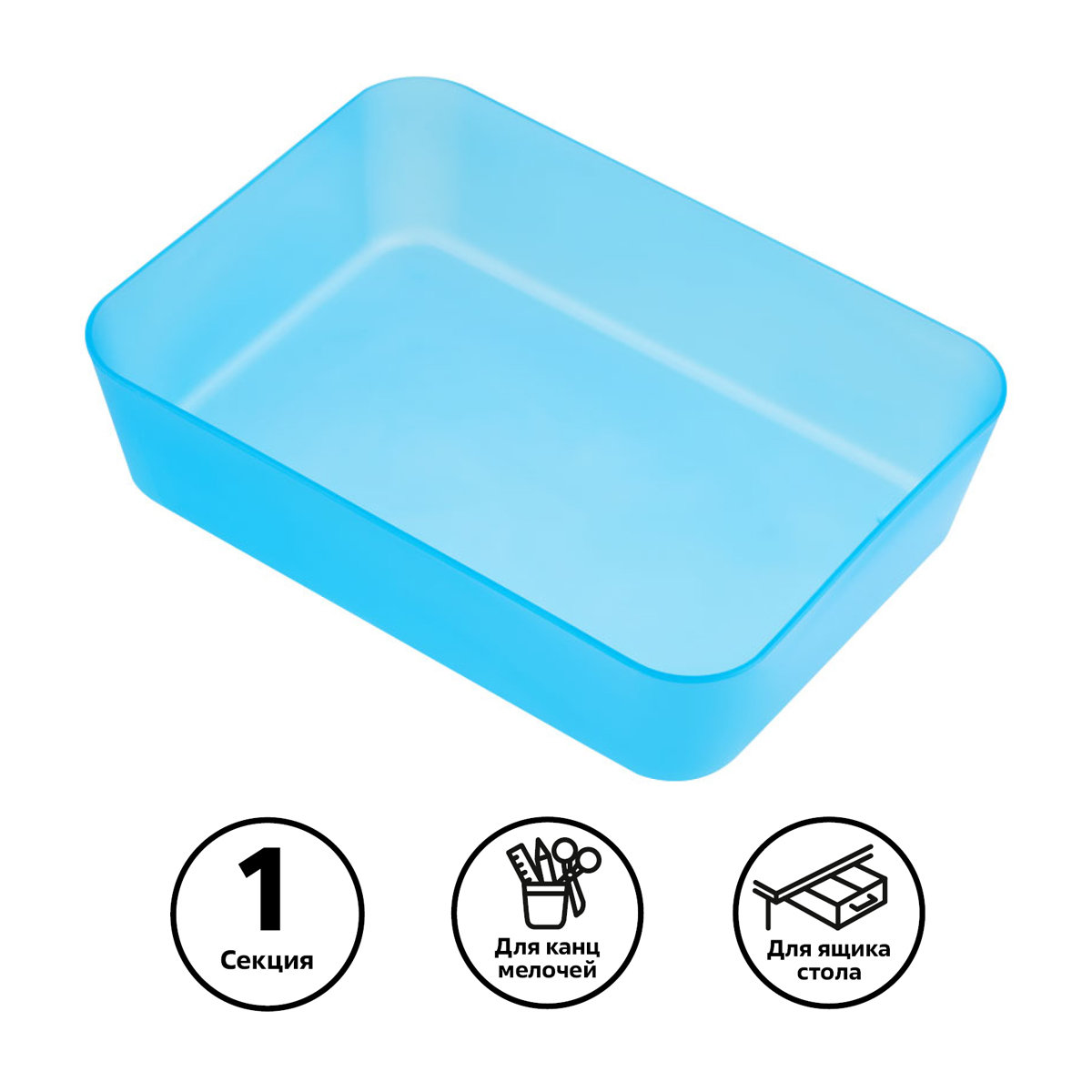 Лоток предназначен для хранения канцелярских принадлежностей. Помогает организовать порядок и легко умещается в ящике рабочего стола.
