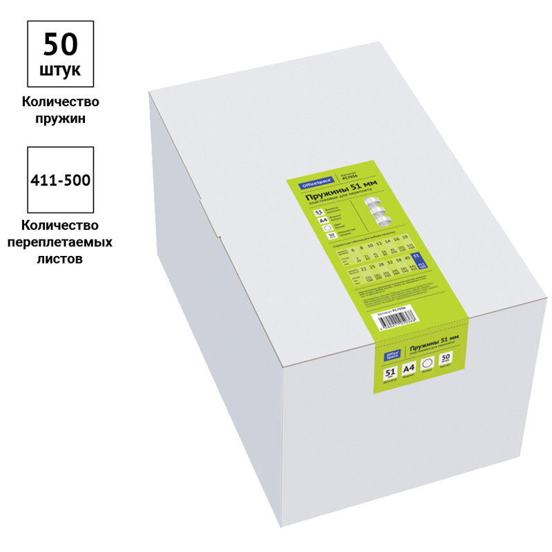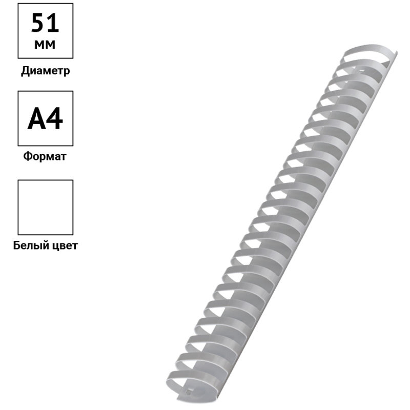Пластиковые пружины OfficeSpace белого цвета диаметром 51мм предназначены для переплета документов. Легко выдерживают многократное раскрытие при необходимости добавить или удалить листы из готовой брошюры. Для надежной фиксации листов брошюры в пружине предусмотрены специальные блокирующие замки. Рекомендуемый объем брошюры при использовании данного диаметра пружины: 411-500 листов.