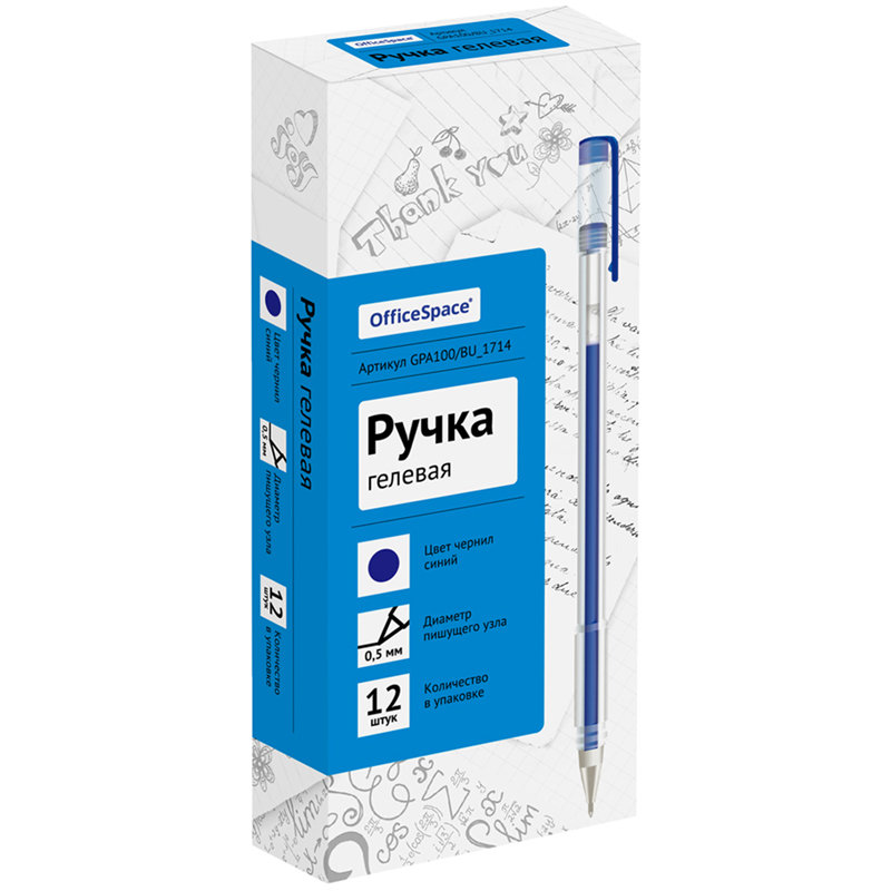 Ручка гелевая с колпачком, пластиковый корпус, синие чернила.