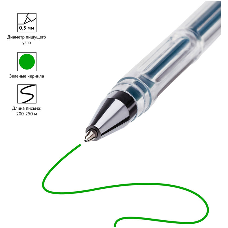 Ручка гелевая с колпачком, пластиковый корпус, зеленые чернила.